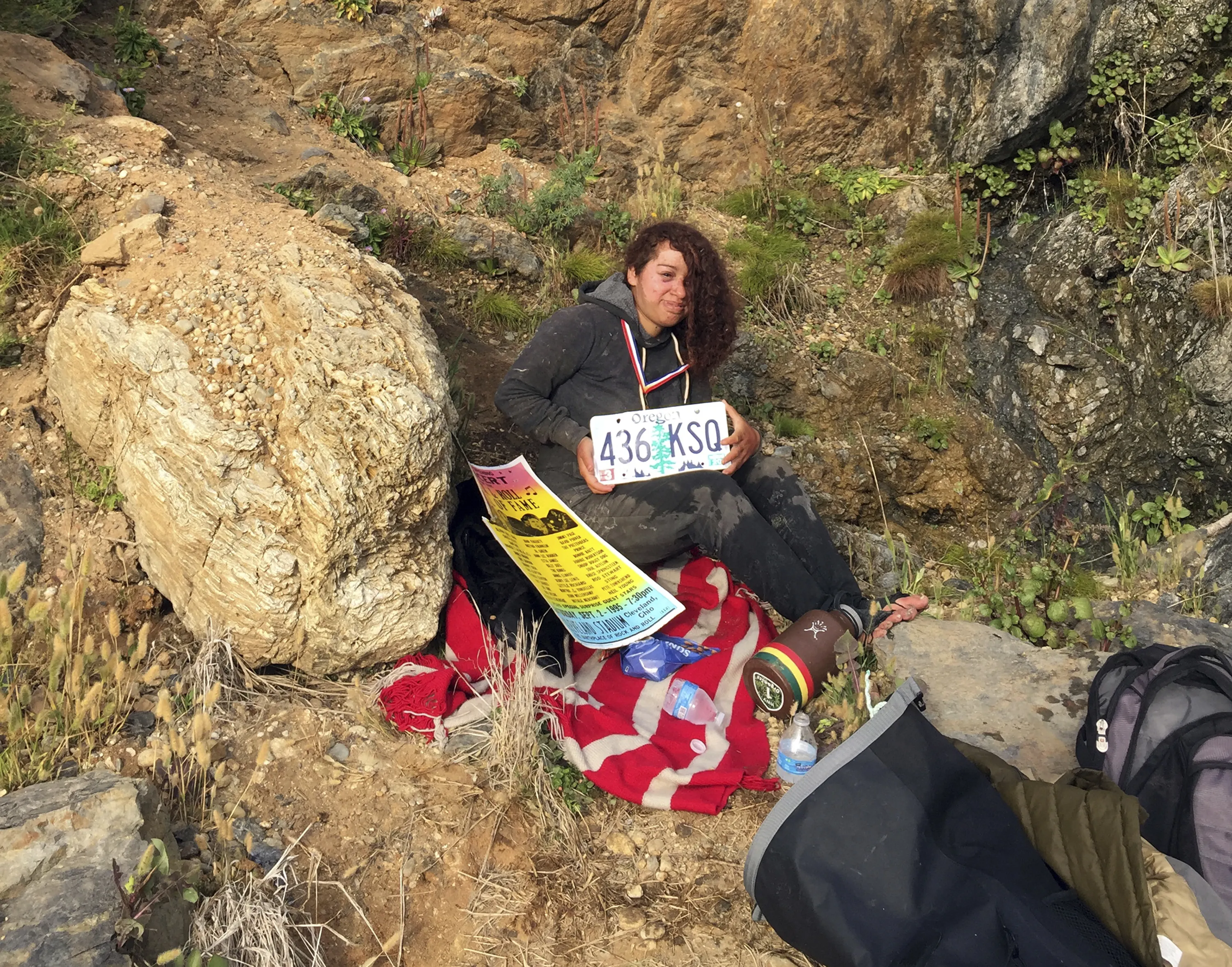 This Friday, July 13, 2018 photo by Chad Moore shows 23-year-old Angela Hernandez of Portland, Ore., after she survived a 250-foot car plunge off a cliff and a week stranded on a remote beach near Big Sur, Calif. Moore and his wife Chelsea Moore were camping in Big Sur when they came upon a wrecked Jeep in the surf line, and then a bit later found Hernandez. “We freakin' love that beach and we're so glad she's alive”, Chelsea Moore said Monday, July 16, 2018. (Photo by Chad Moore via AP Photo)