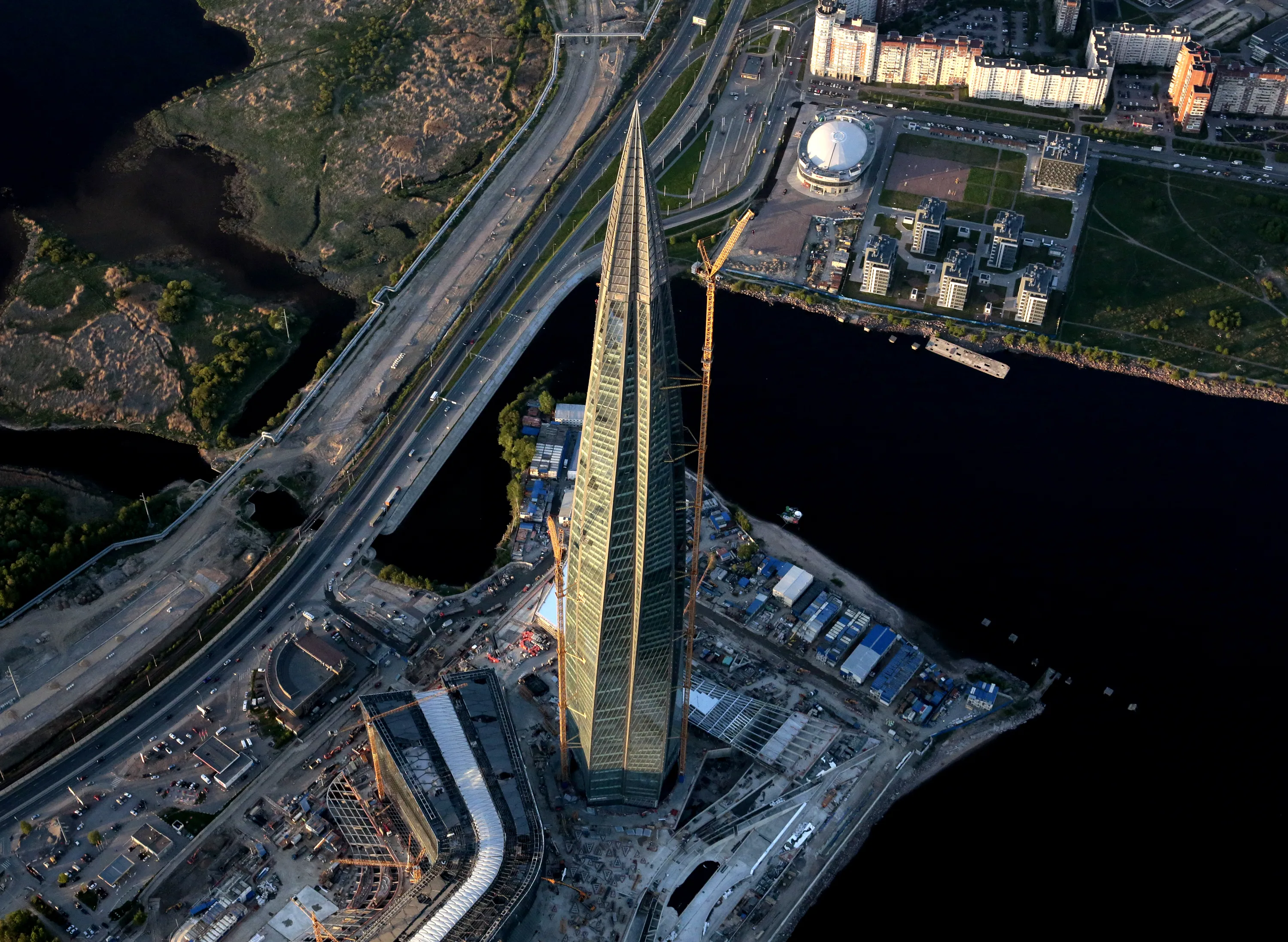An aerial view shows the business tower Lakhta Centre, which is under construction in St. Petersburg, the host city for the 2018 FIFA World Cup, Russia May 19, 2018. (Photo by Anton Vaganov/Reuters)