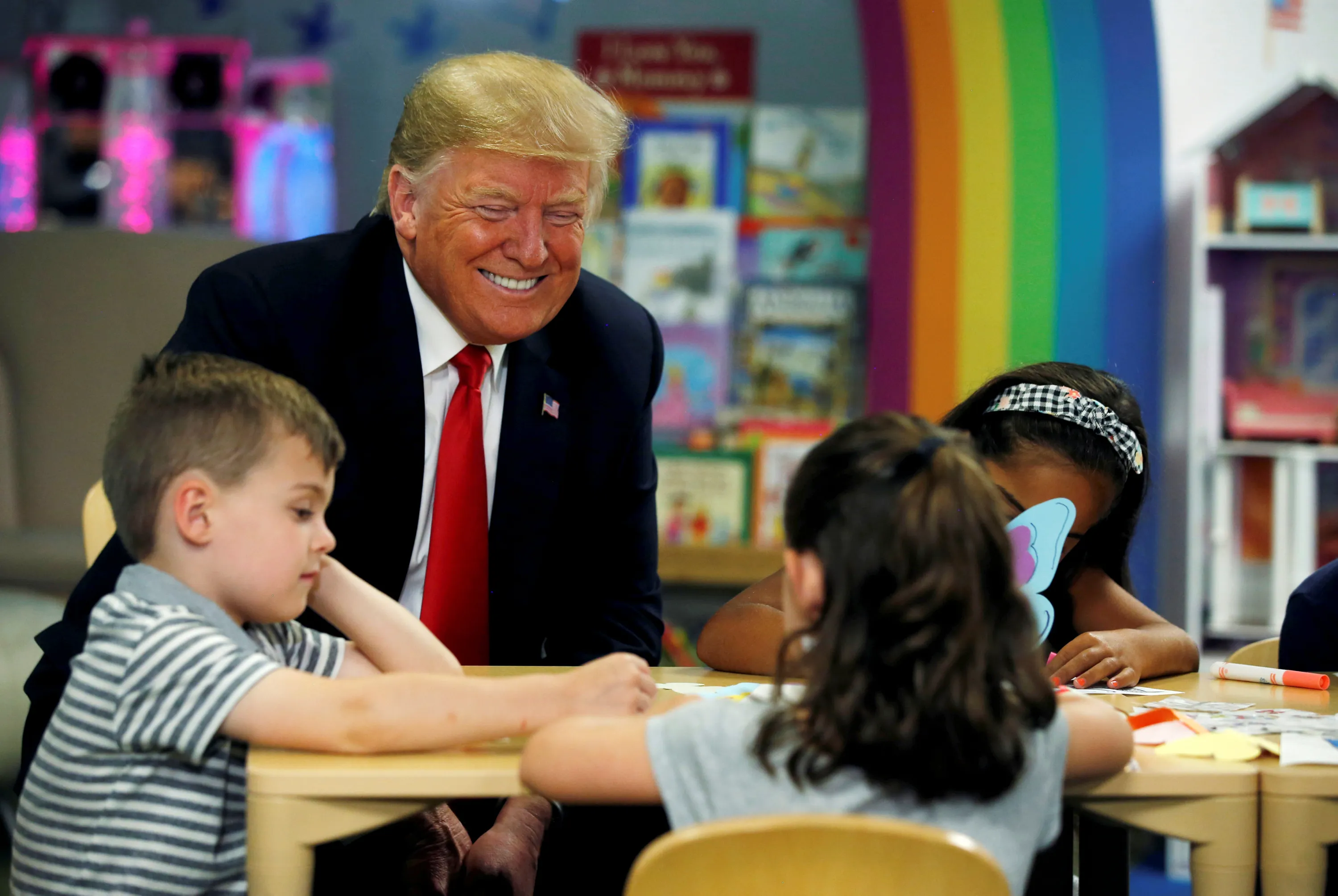 U.S. President Donald Trump speaks with children while visiting Nationwide Children's Hospital in Columbus, Ohio, U.S., August 24, 2018. (Photo by Leah Millis/Reuters)