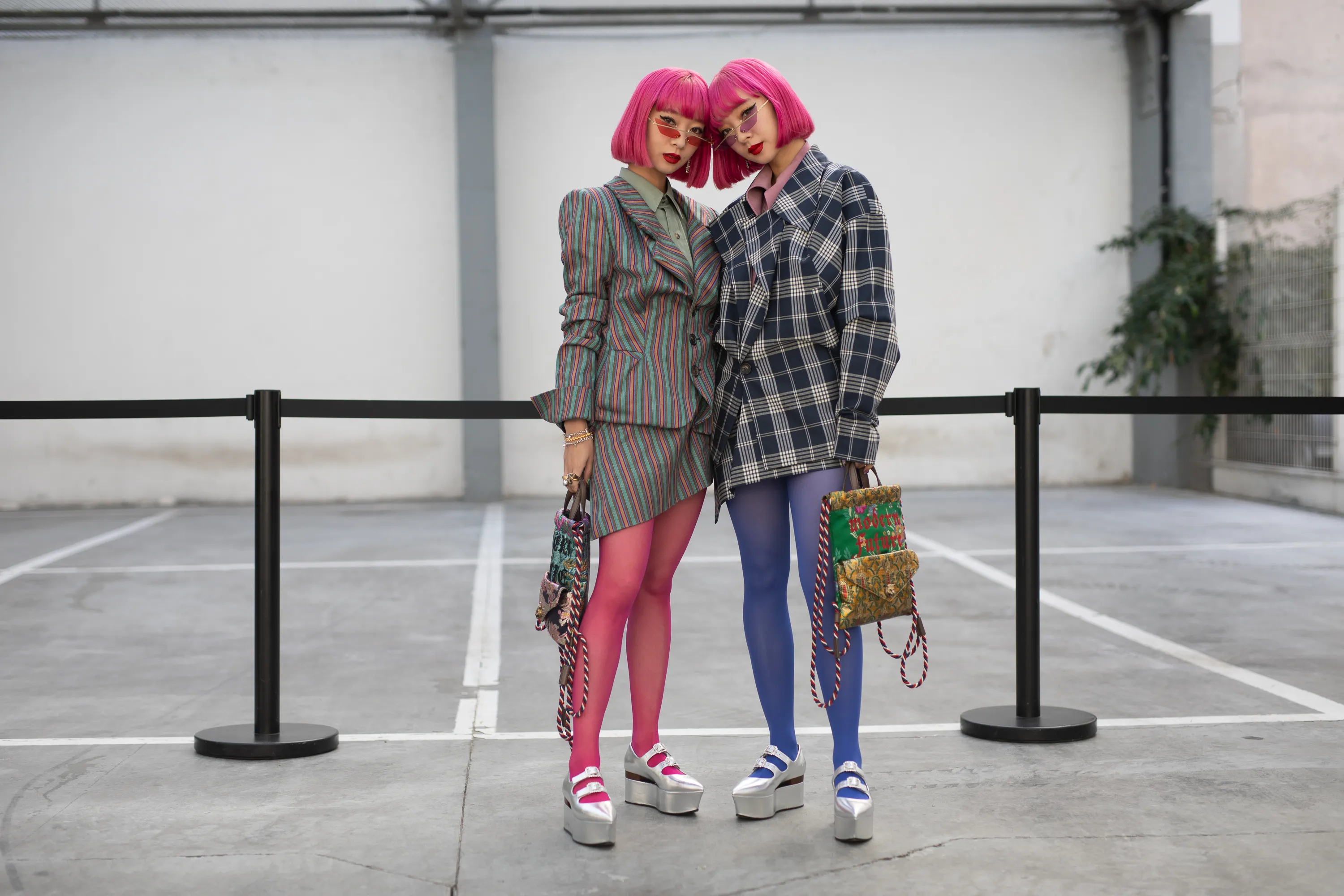 The music duo Amiaya are seen on the street during Paris Fashion Week SS19 wearing Vivienne Westwood on September 29, 2018 in Paris, France. (Photo by Matthew Sperzel/Getty Images)