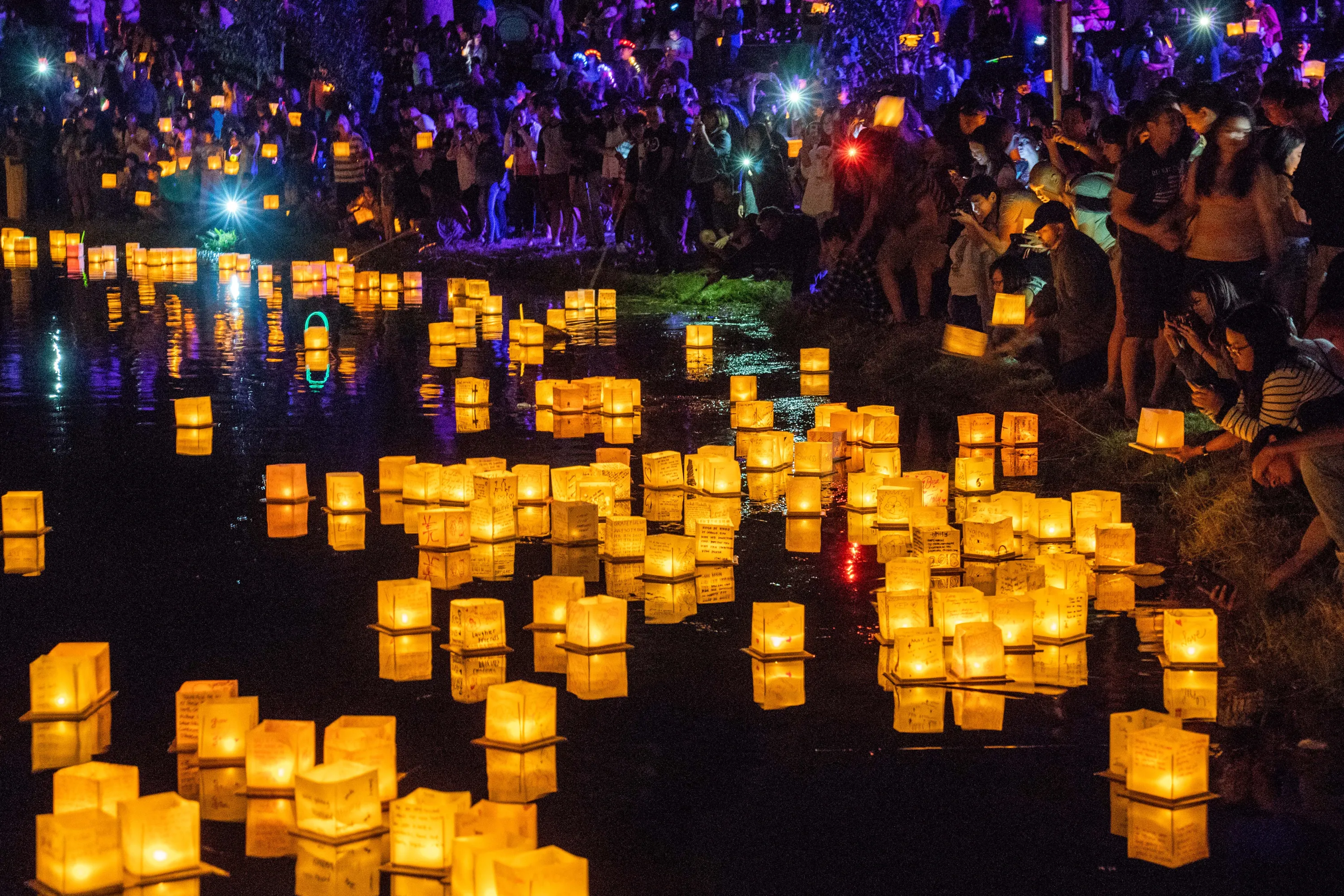 People attend Water Lantern Festival in Los Angeles, the United States, September 15, 2018. (Photo by Qian Weizhong/Xinhua News Agency/Barcroft Images)