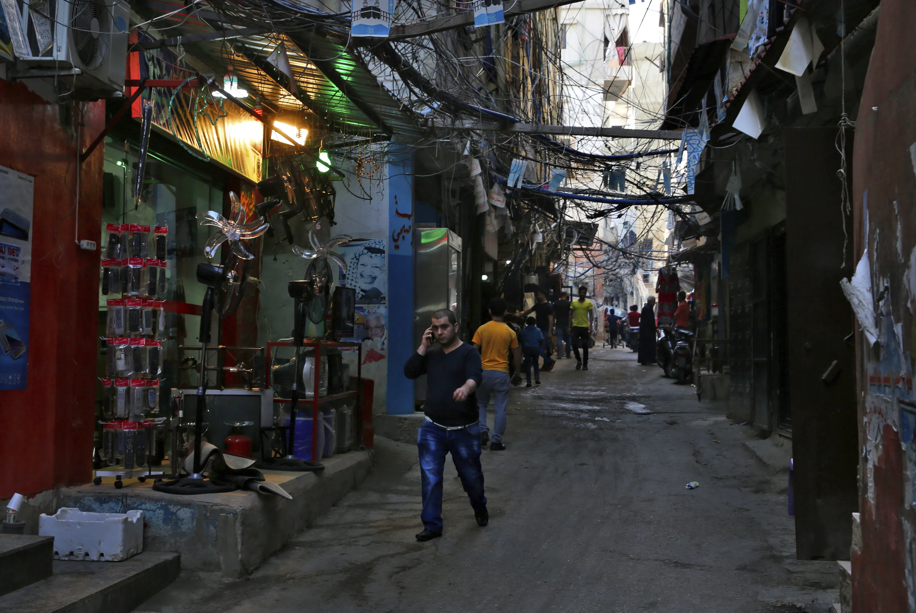 In this Thursday, May 4, 2017 photo, people walk inside the Bourj al-Barajneh Palestinian refugee camp in Beirut, Lebanon. (Photo by Bilal Hussein/AP Photo)