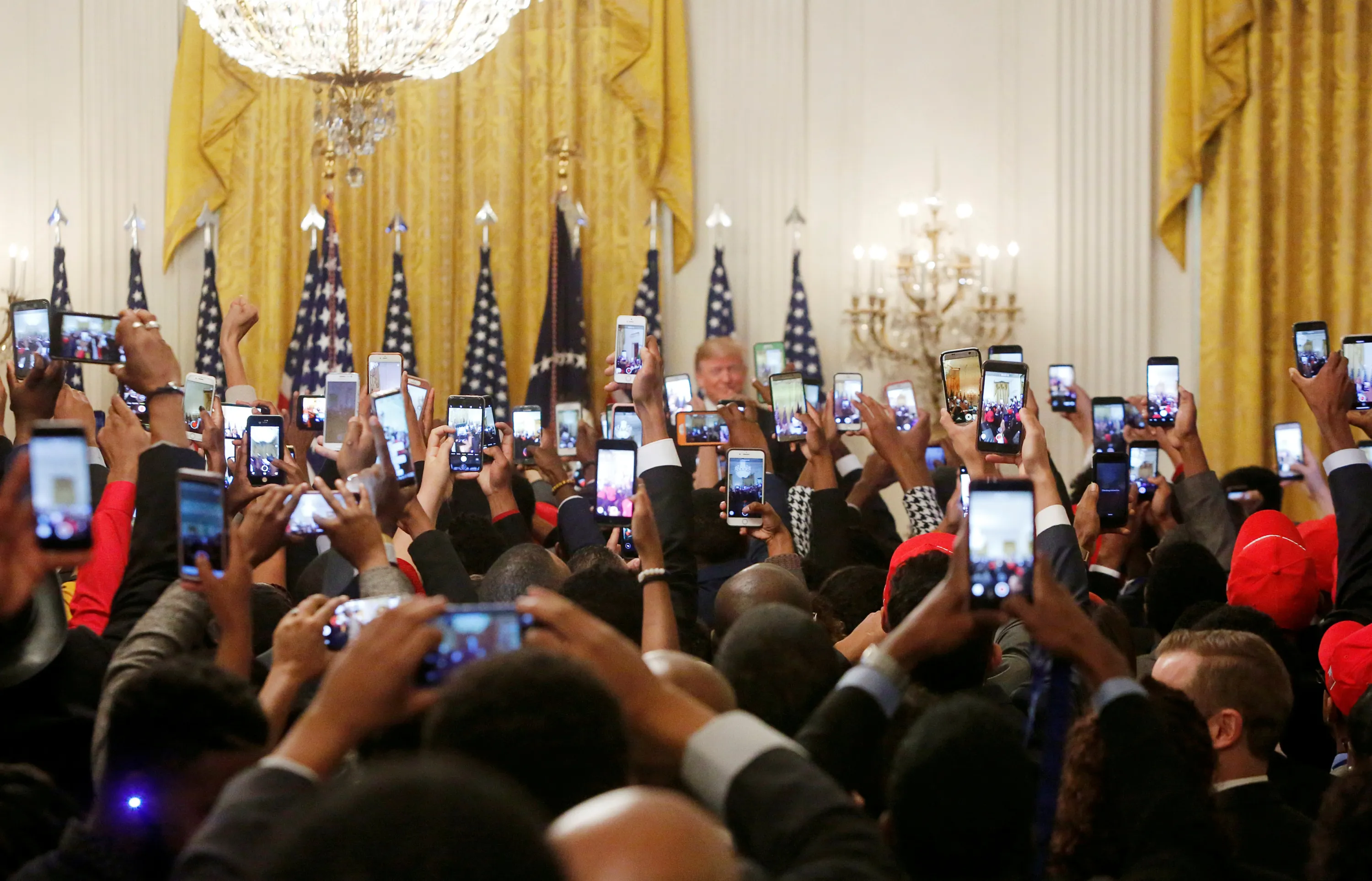 Attendees take photos and videos with their phones of U.S. President Donald Trump as he attends the “2018 Young Black Leadership Summit” in the East Room of the White House in Washington, U.S., October 26, 2018. (Photo by Cathal McNaughton/Reuters)
