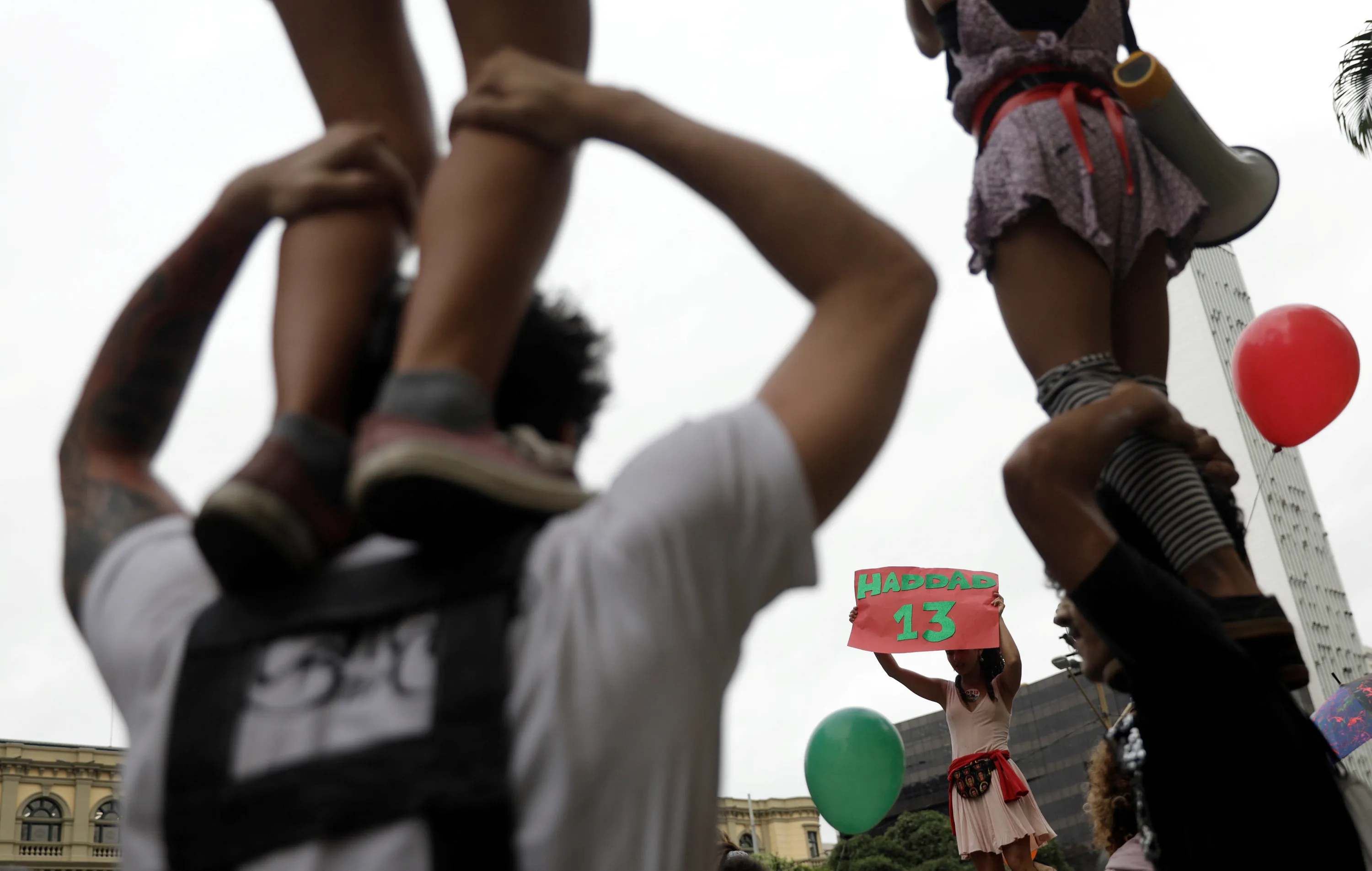 Revellers take part in a protest organised by clowns against presidential candidate Jair Bolsonaro and in support of presidential candidate Fernando Haddad in downtown Rio de Janeiro, Brazil October 26, 2018. (Photo by Ricardo Moraes/Reuters)