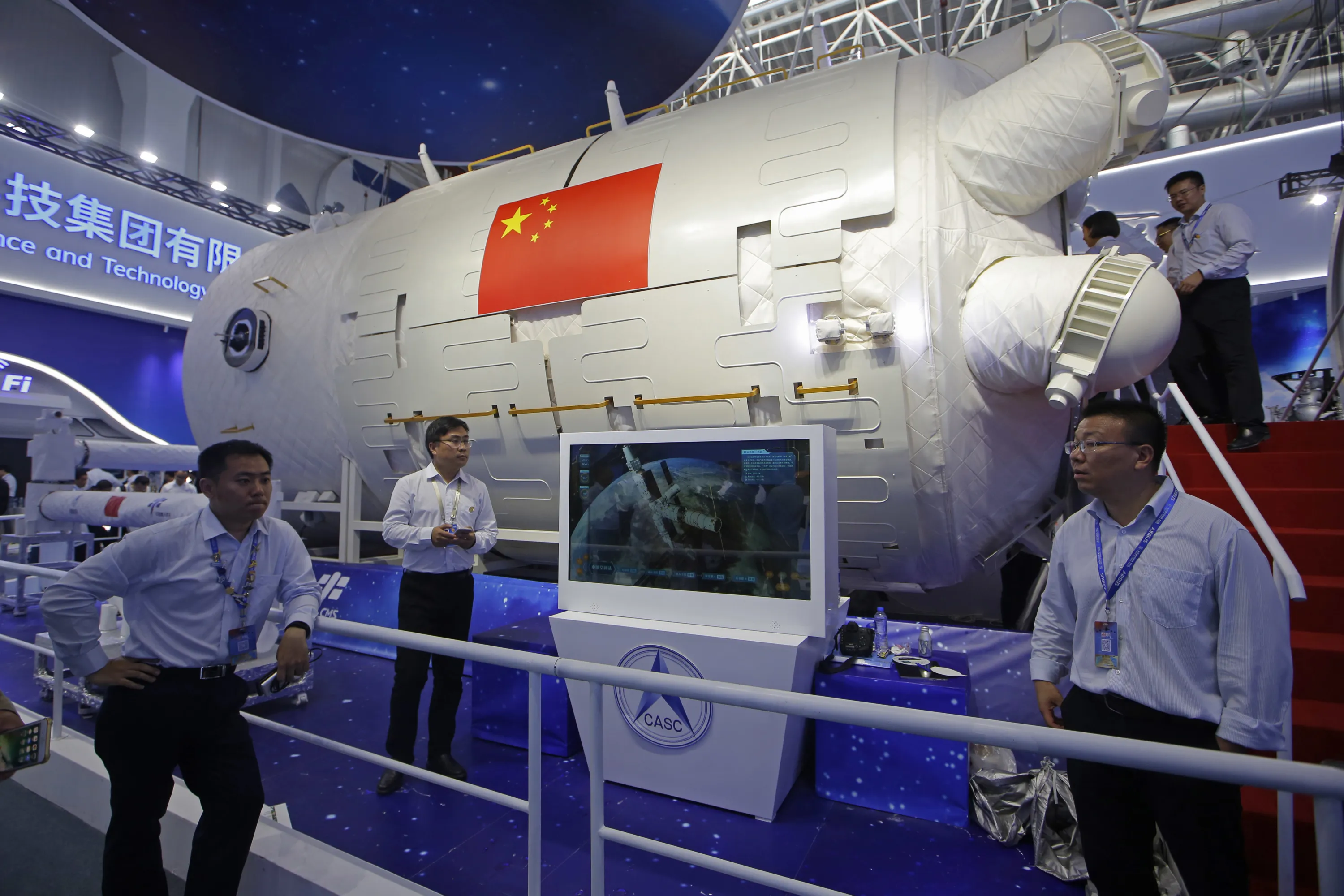 A model of Chinese module of space station is displayed during the 12th China International Aviation and Aerospace Exhibition, also known as Airshow China 2018, Tuesday November 6, 2018, in Zhuhai city, south China's Guangdong province. (Photo by Kin Cheung/AP Photo)