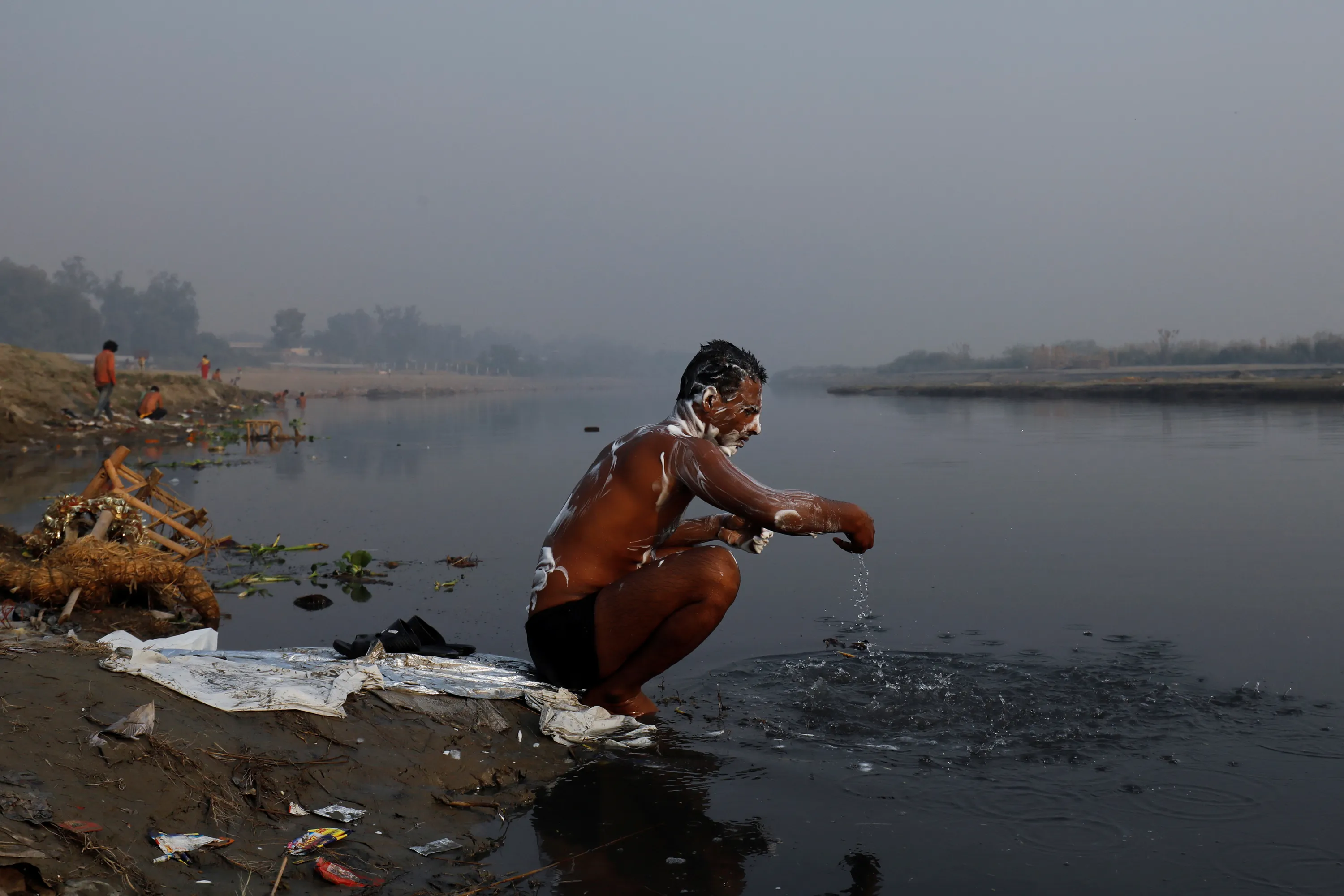 A man bathes in the polluted waters of the Yamuna river in New Delhi, India, October 25, 2018. (Photo by Anushree Fadnavis/Reuters)