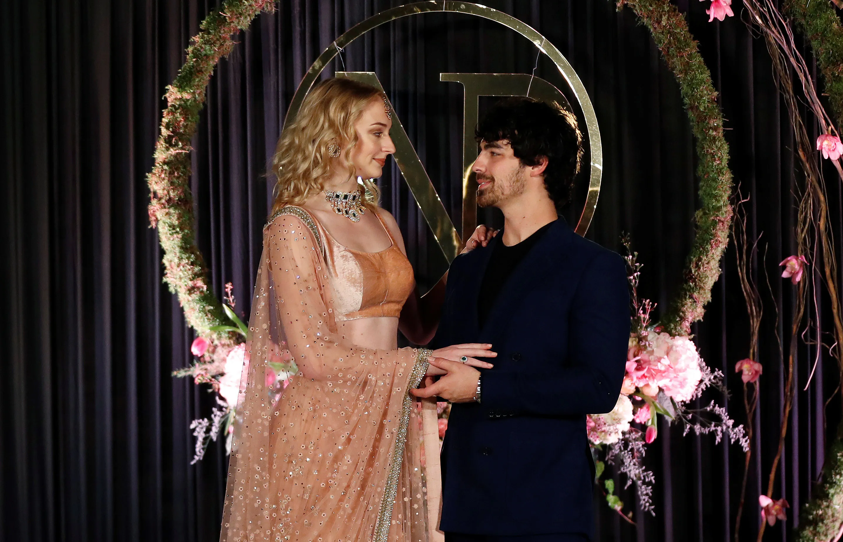 Actor Sophie Turner and singer Joe Jonas pose during a photo opportunity at the wedding reception of Bollywood actor Priyanka Chopra and singer Nick Jonas, in New Delhi, December 4, 2018. (Photo by Adnan Abidi/Reuters)