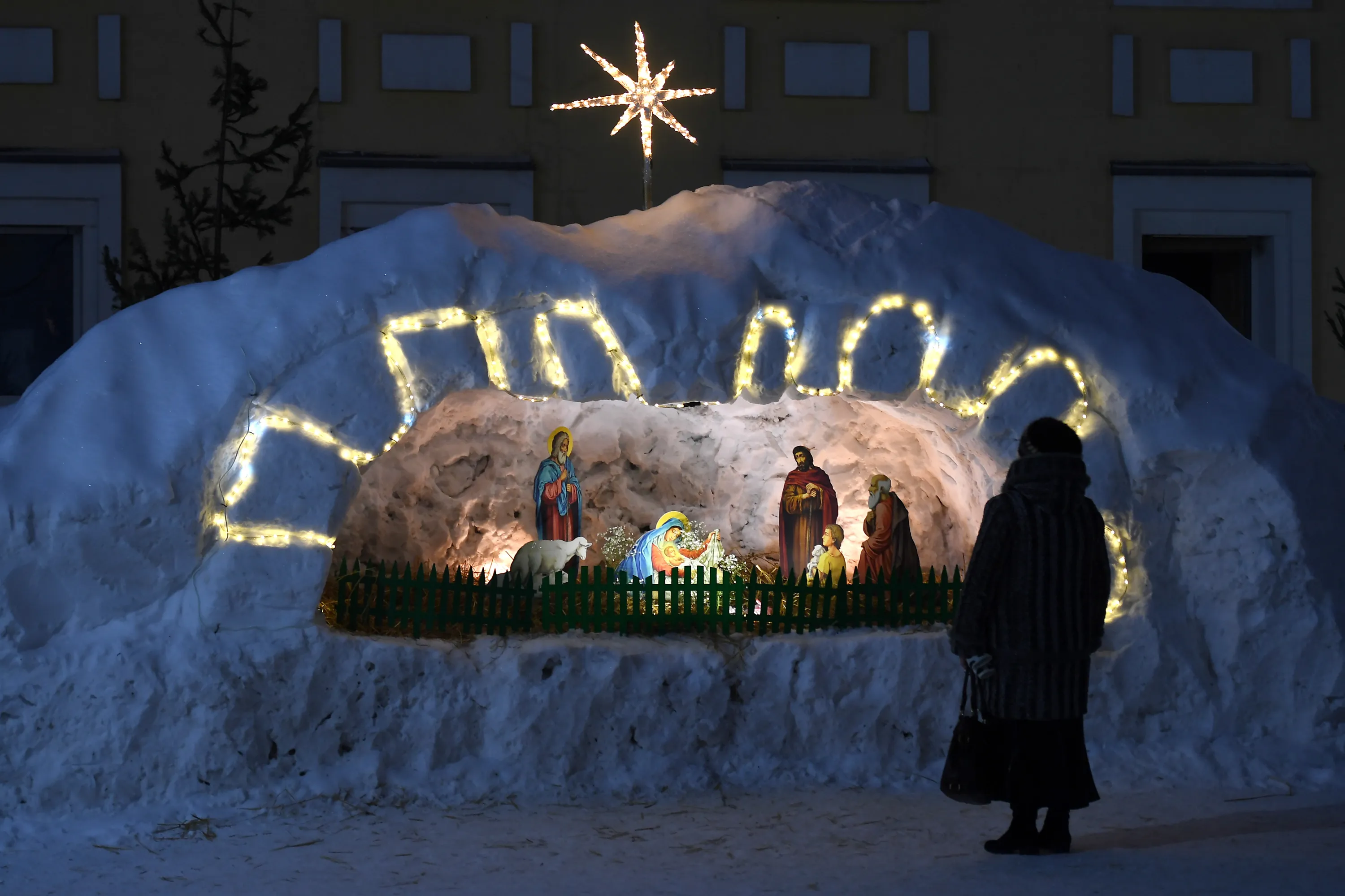 A nativity scene at the Ascension Cathedral ahead of a Christmas liturgy in Novosibirsk, Russia on January 6, 2019. The Russian Orthodox Church celebrates Christmas according to the Julian calendar. (Photo by Kirill Kukhmar/TASS)