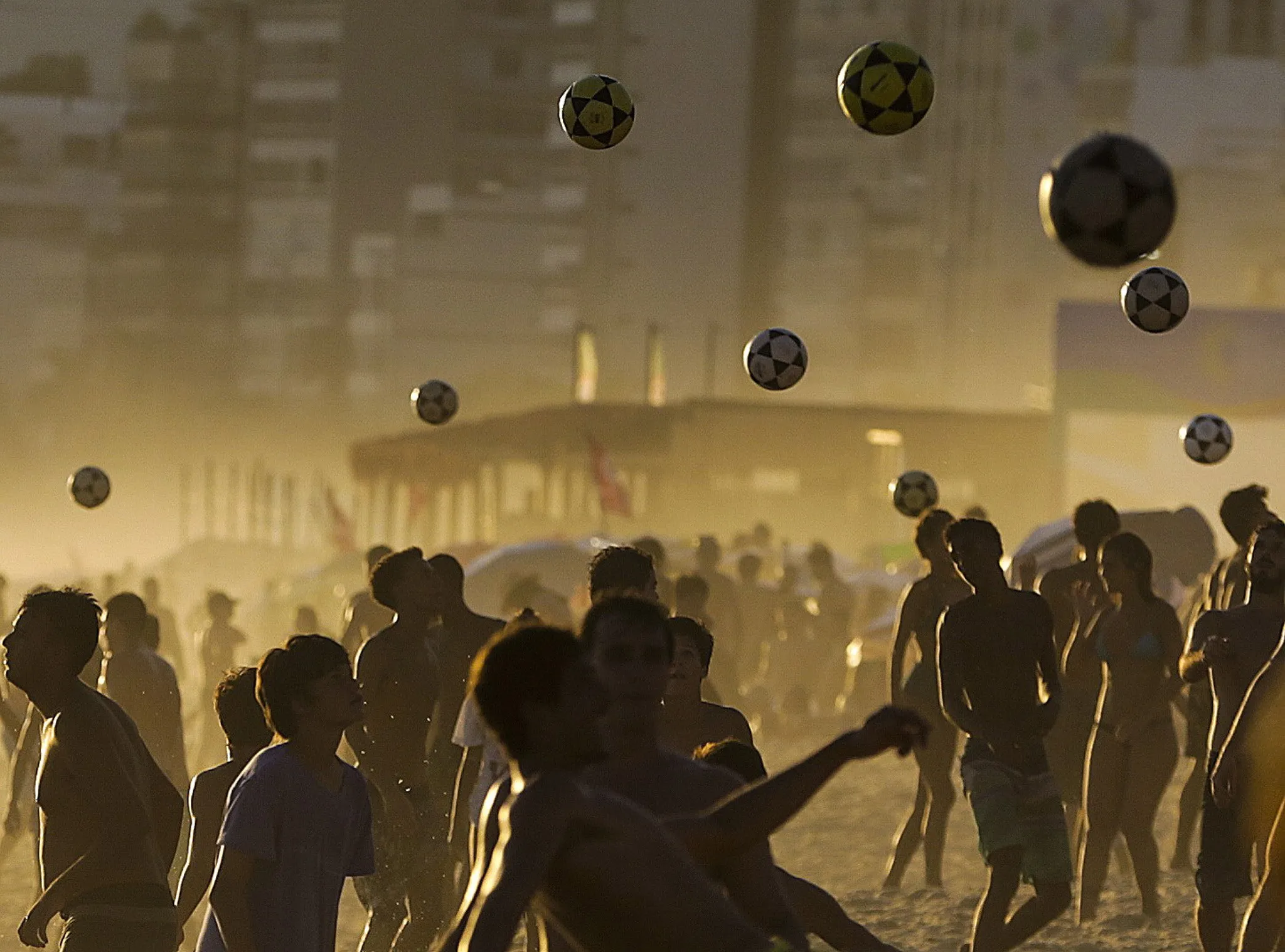 Peopleeople throw balls at the Ipanema beach during a hot day in Rio de Janeiro, Brazil, 07 January 2019. According to weather reports, temperatures in Rio de Janeiro reached up to 39.6 degrees Celsius. (Photo by António Lacerda/EPA/EFE)