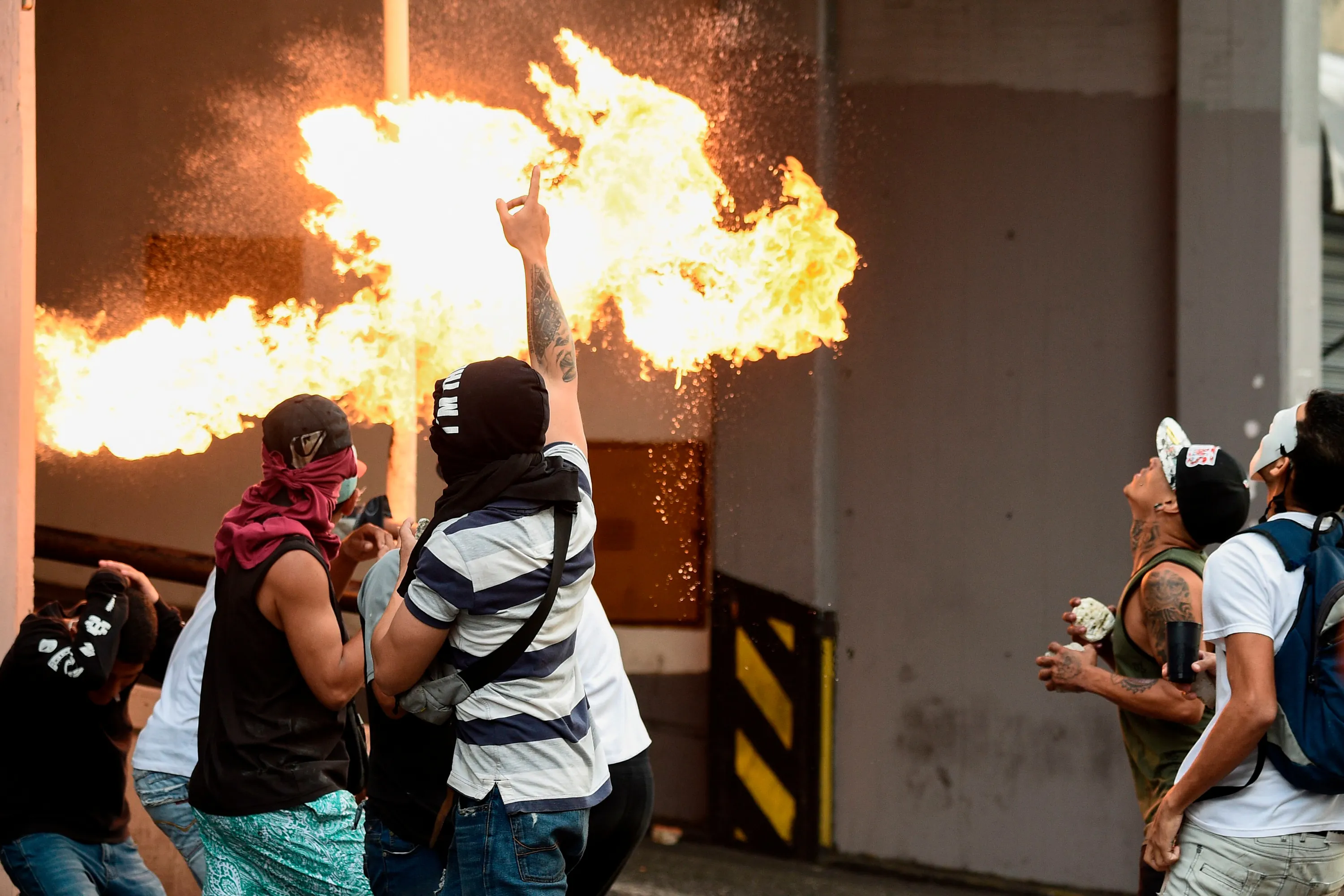 Opposition demonstrators clash with security forces in a protest against the government of President Nicolas Maduro on the anniversary of the 1958 uprising that overthrew the military dictatorship, in Caracas on January 23, 2019. Venezuela's National Assembly head Juan Guaido declared himself the country's “acting president” on Wednesday during a mass opposition rally against leader Nicolas Maduro. (Photo by Federico Parra/AFP Photo)