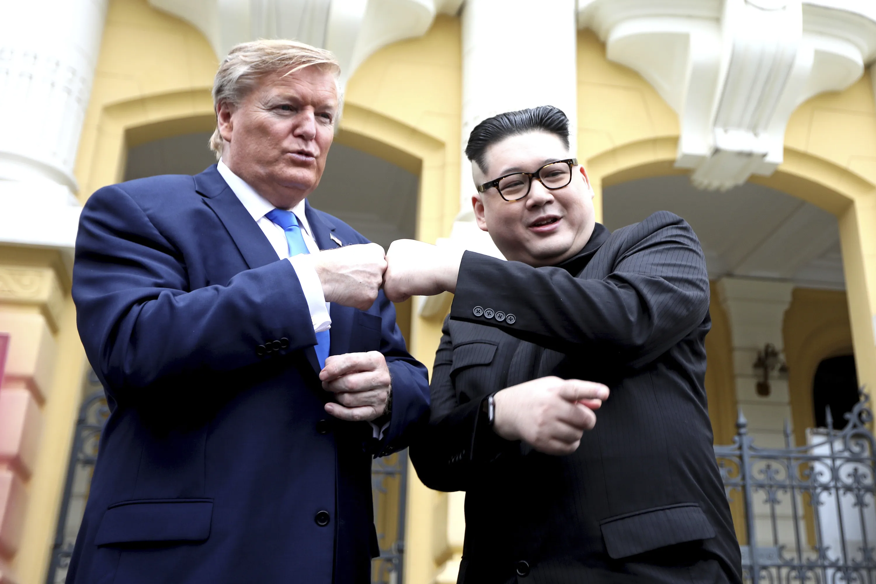 U.S. President Donald Trump impersonator Russell White, left, and Kim Jong-un impersonator Howard X pose for photos outside the Opera House in Hanoi, Vietnam, Friday, February 22, 2019. The second summit between Trump and Kim will take place in Hanoi on Feb. 27 and 28. (Photo by Minh Hoang/AP Photo)
