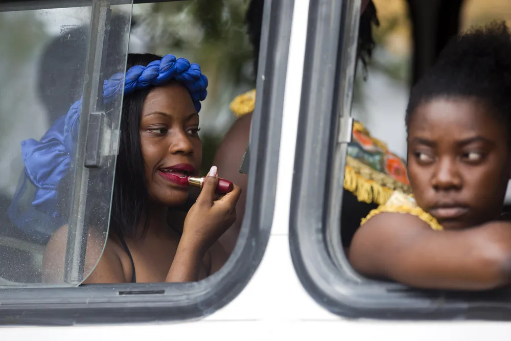 A dancer applies lipstick onboard a bus before the start of the Carnival parade in the Carrefour district of Port-au-Prince, Haiti, Tuesday, March 5, 2019. (Photo by Dieu Nalio Chery/AP Photo)