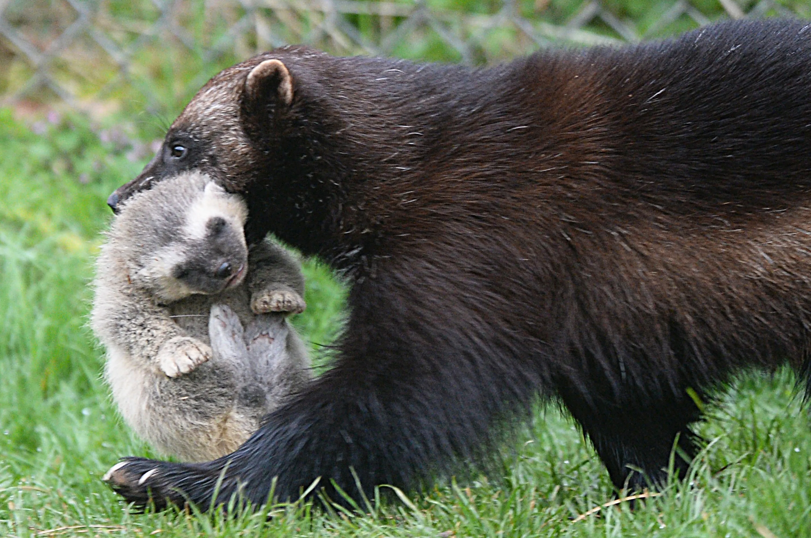 A female wolverine carries her cub at Whipsnade Zoo in Whipsnade, UK on March 20, 2019. Two wolverines were born last month at the zoo following a breeding first for the international conservation charity ZSL. Numbers in the wild are decreasing, so the breeding programme is of global significance. (Photo by Tony Margiocchi/Barcroft Images)