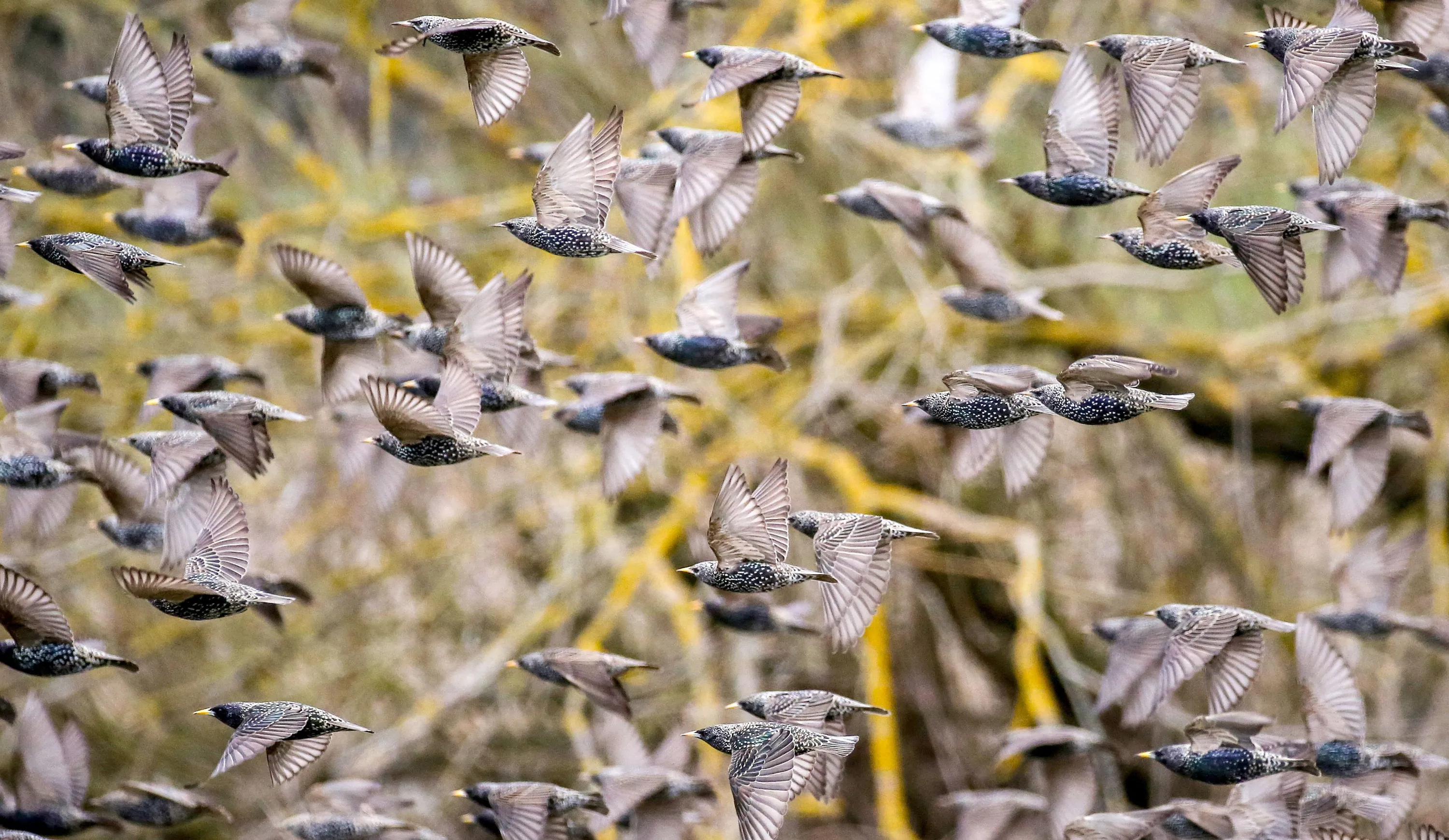 A flock of starlings fly through a nature reserve close to the Danube, Daugendorf, Germany on March 13, 2019. (Photo by Thomas Warnack/AFP Photo)