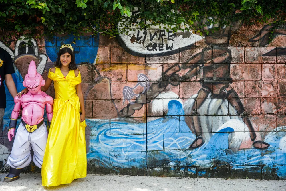 People participate in the “Comic Con de las favelas”, in Sao Paulo, Brazil, 24 March 2019. The “Cómic Con de las favelas” (Comic Con of the slums) lands for the first time in Brazil in the periphery of Sao Paulo. Located in Capao Redondo, one of the most violent neighborhoods of Sao Paulo, the “PerifaCon” was born as a counterpoint to the “Comic Con Experience (CCXP)”, the largest comic convention in Latin America and which annually gathers lovers of superheroes and video games. (Photo by Fernando Bizerra/EPA/EFE)