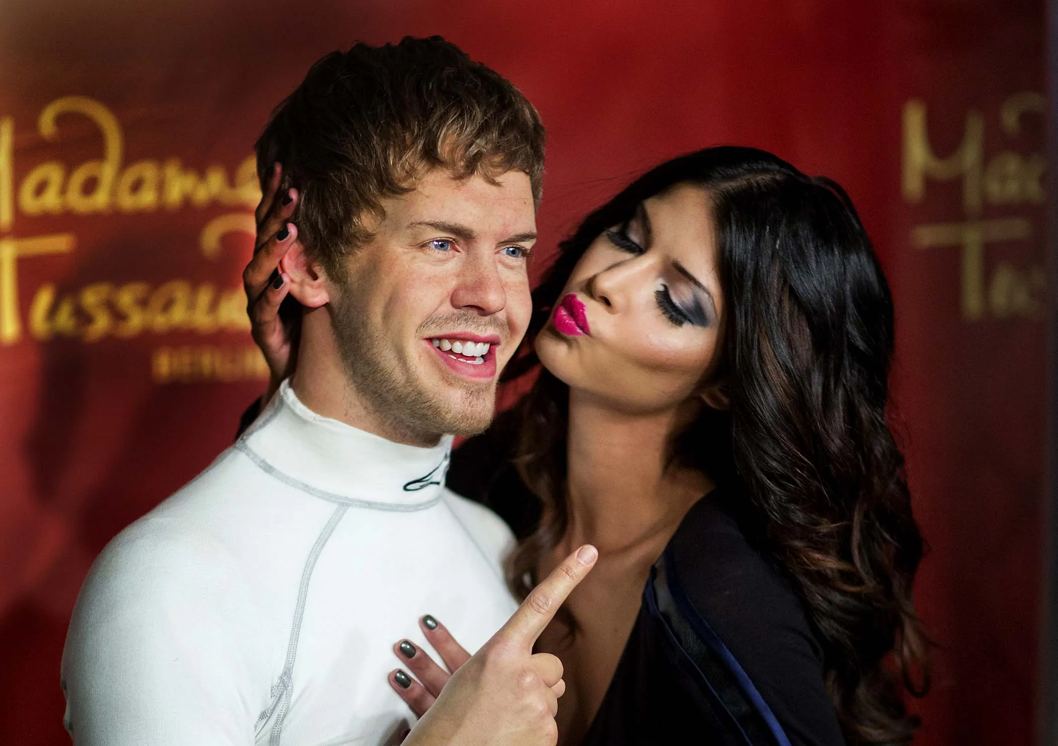 German model Micaela Schaefer, right, poses next to the new waxwork figure of Formula One World Champion German Sebastian Vettel at Madame Tussauds in Berlin, Germany on July 27, 2012. (Photo by Gero Breloer/Associated Press)
