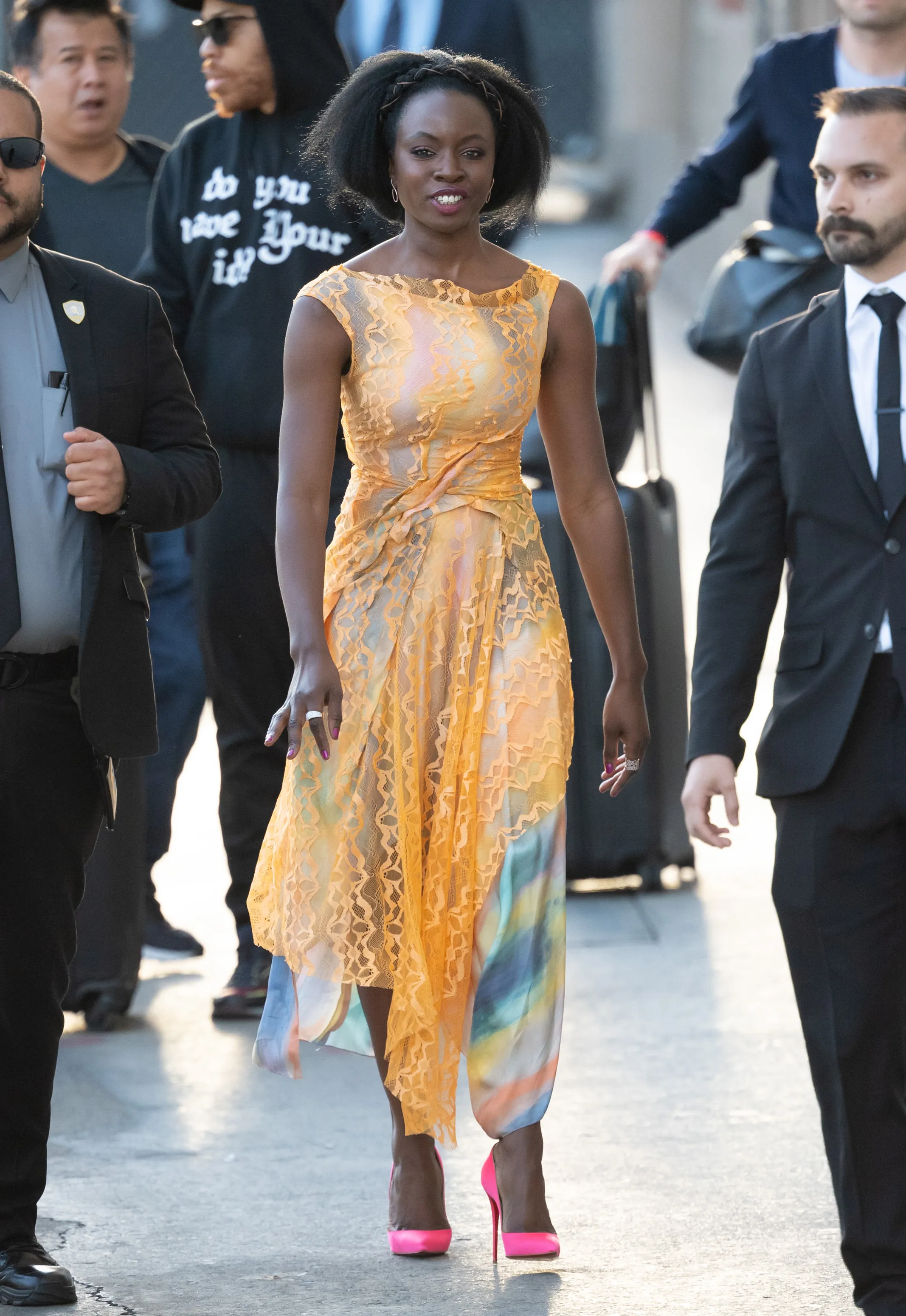 Danai Gurira is seen at “Jimmy Kimmel Live” in Los Angeles, California on April 9, 2019. (Photo by Bauer-Griffin/Splash News and Pictures)