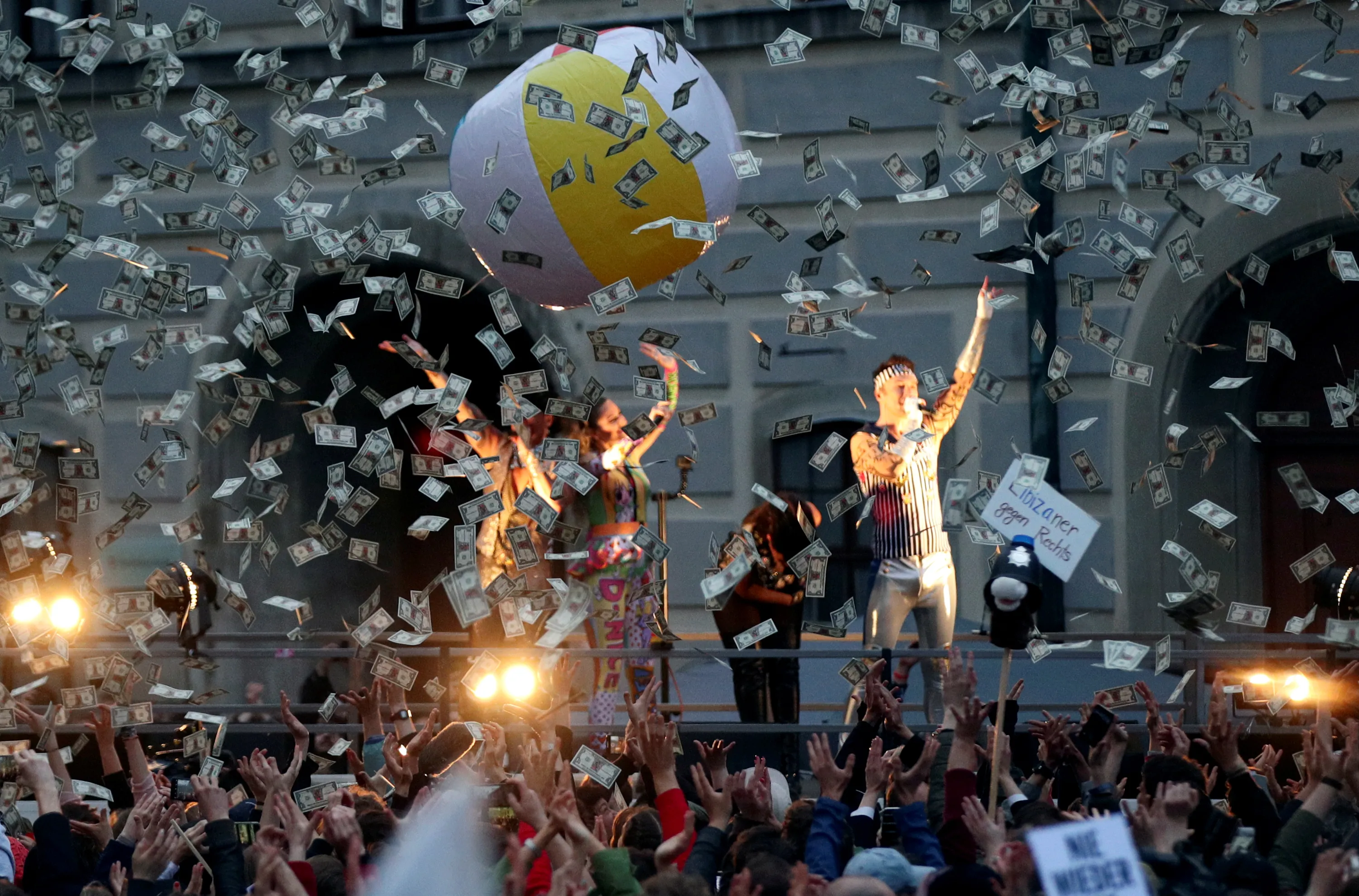 Dutch pop group Vengaboys perform on a stage during a protest against the government in Vienna, Austria, May 30, 2019. (Photo by Lisi Niesner/Reuters)