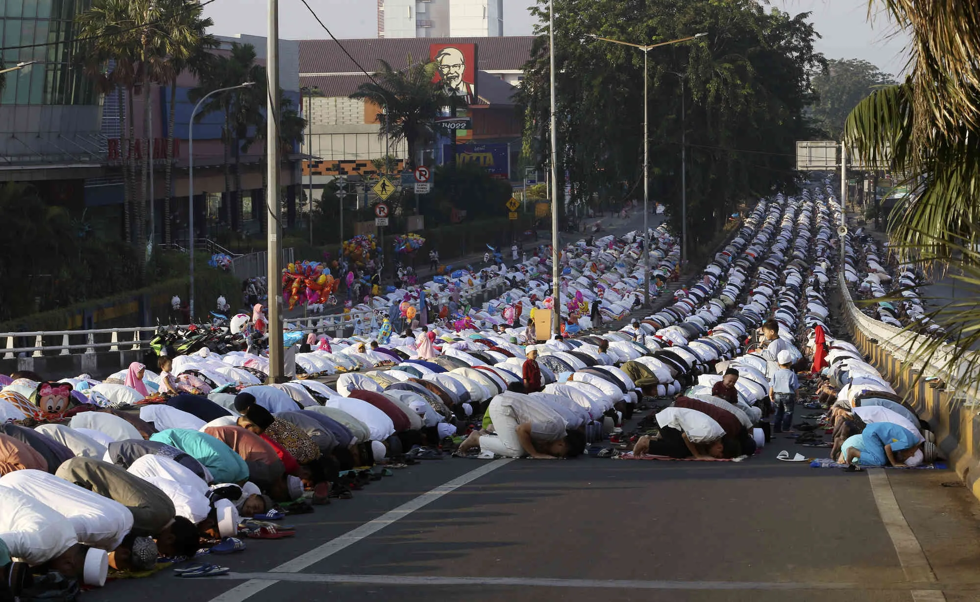 Indonesian Muslims perform Eid al-Fitr prayer that marks the end of the holy fasting month of Ramadan in Jakarta, Indonesia, Wednesday, June 5, 2019. (Photo by Achmad Ibrahim/AP Photo)