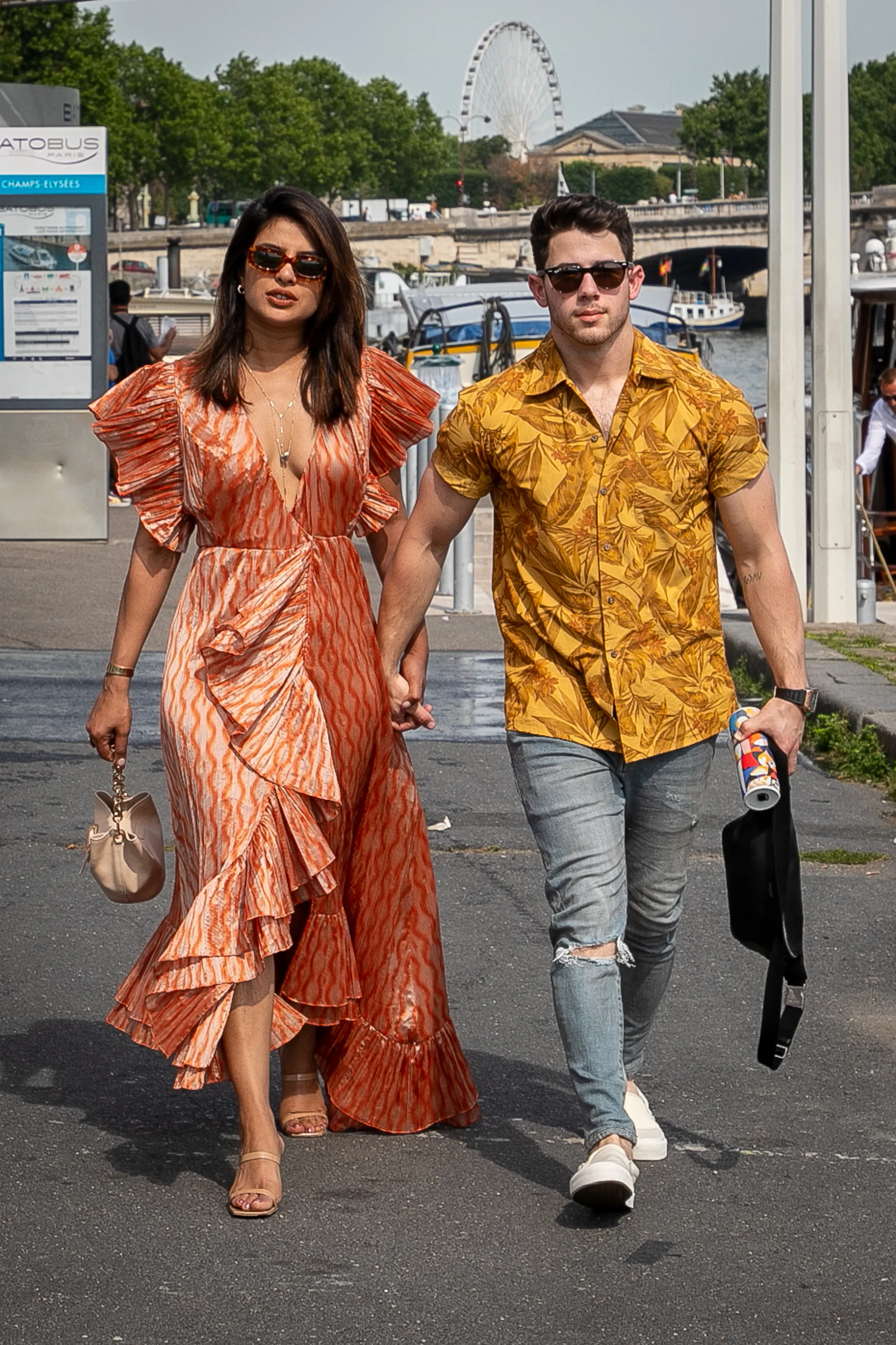 Priyanka Chopra and husband Nick Jonas are seen as they disembarked from the boat “Shivas” after a cruise with Joe Jonas, Sophie Turner and Wilmer Valderrama on the river Seine on June 24, 2019 in Paris, France. (Photo by Marc Piasecki/GC Images)