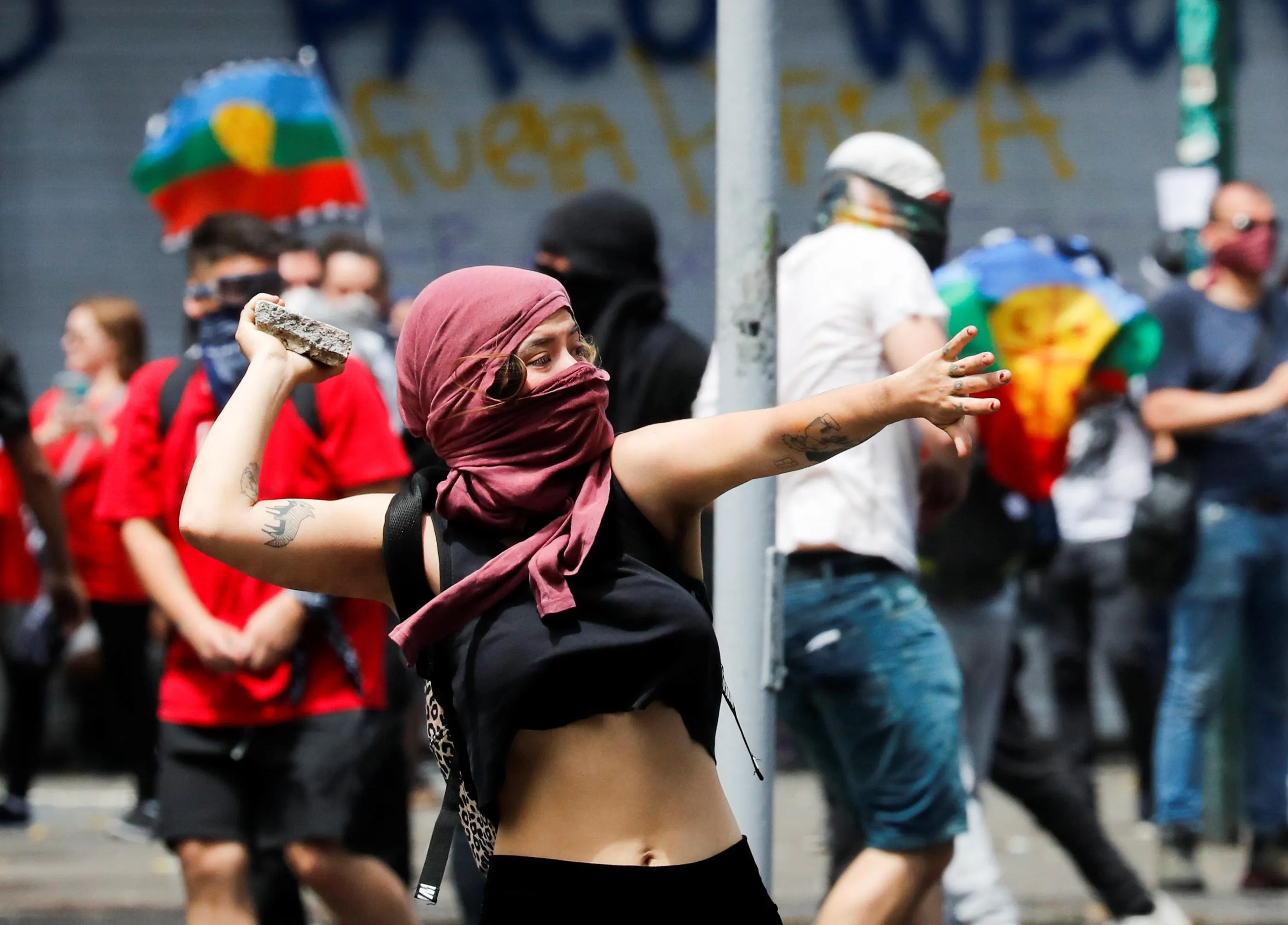 A demonstrator throws a stone during a protest against Chile's state economic model in Santiago, Chile on October 23, 2019. (Photo by Henry Romero/Reuters)