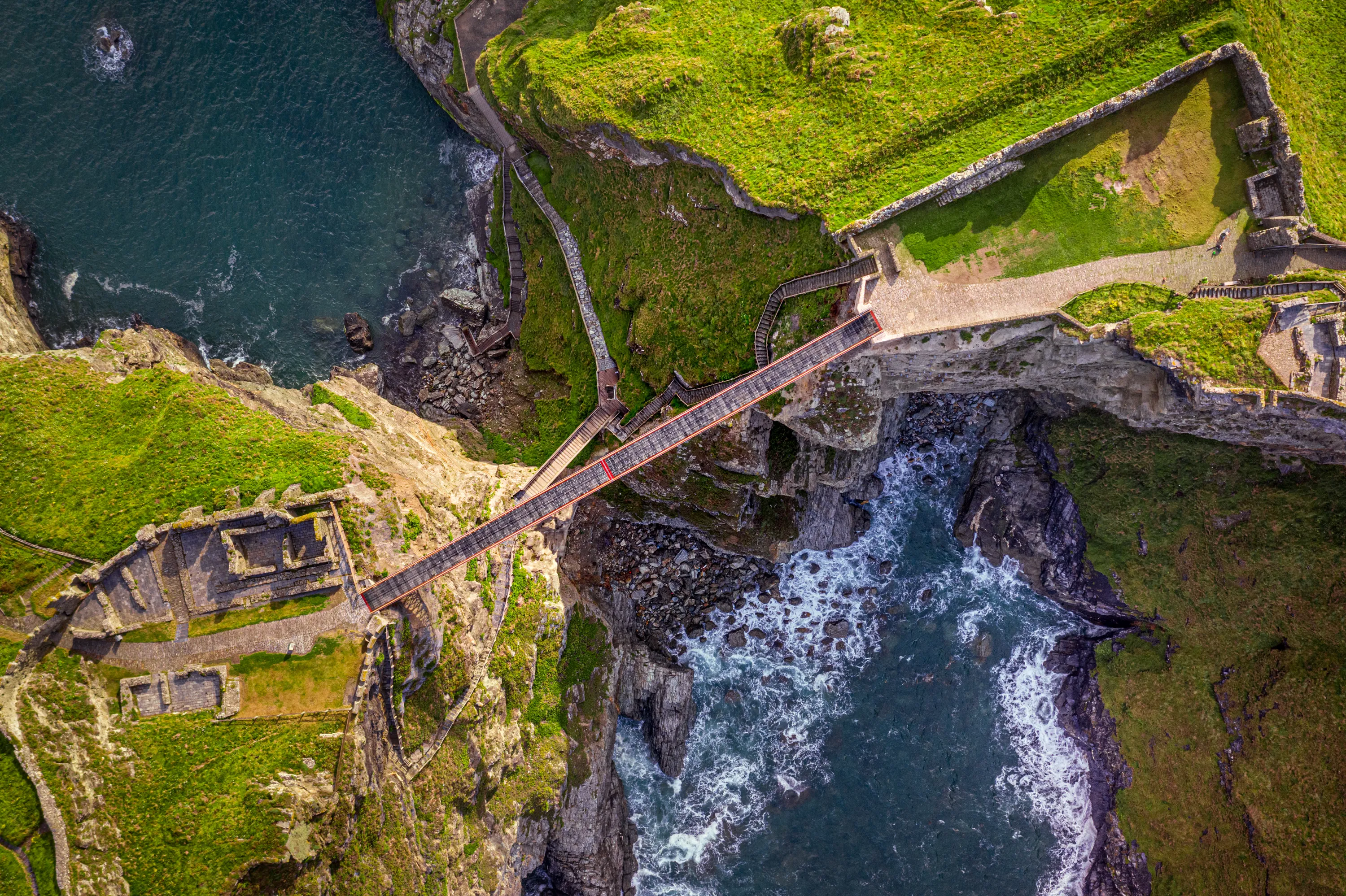 A new footbridge at Tintagel Castle in Cornwall, United Kingdom on August 8, 2019. (Photo by David Levene/The Guardian)