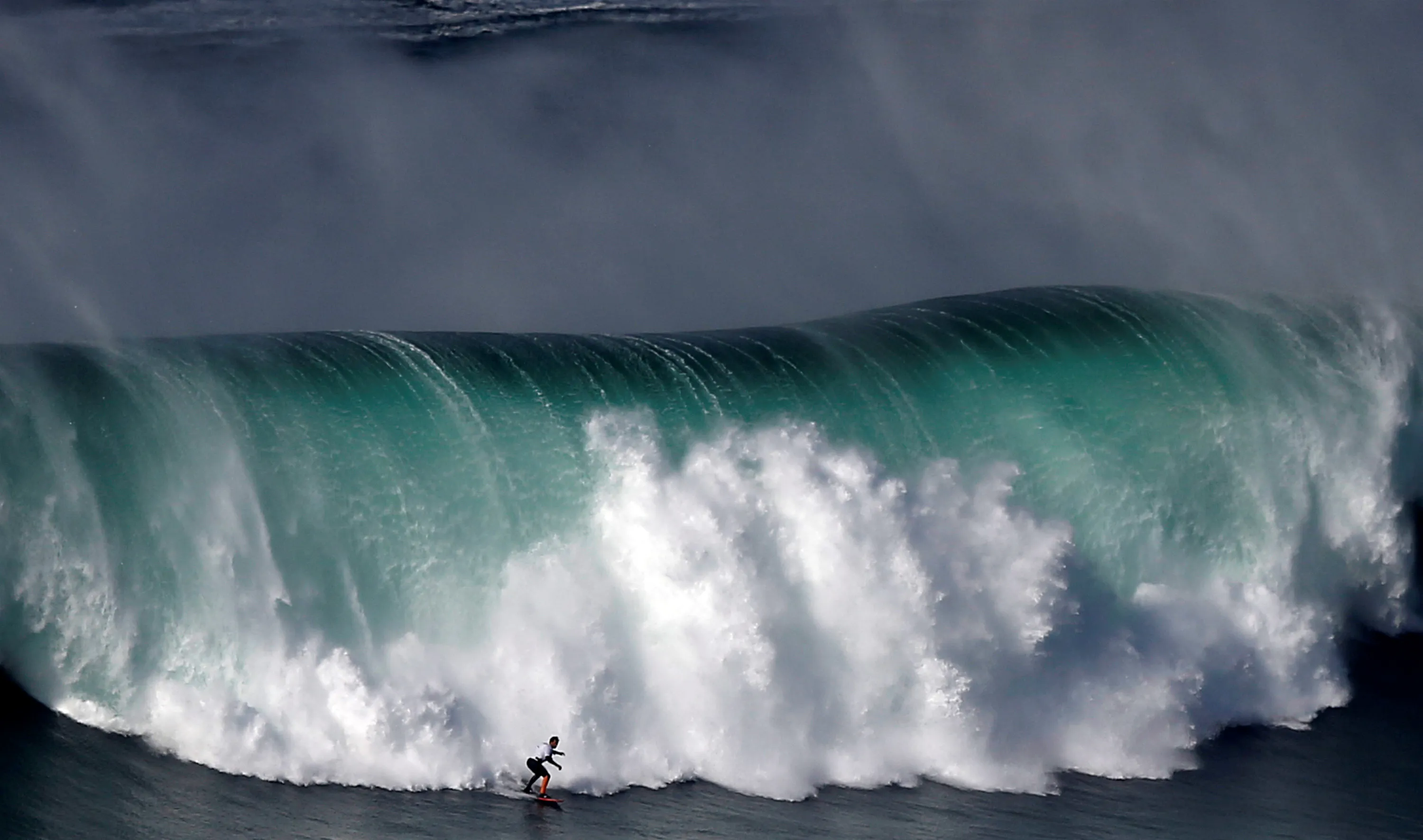 A surfer drops in on a large wave at Praia do Norte in Nazare, Portugal on November 20, 2019. (Photo by Rafael Marchante/Reuters)