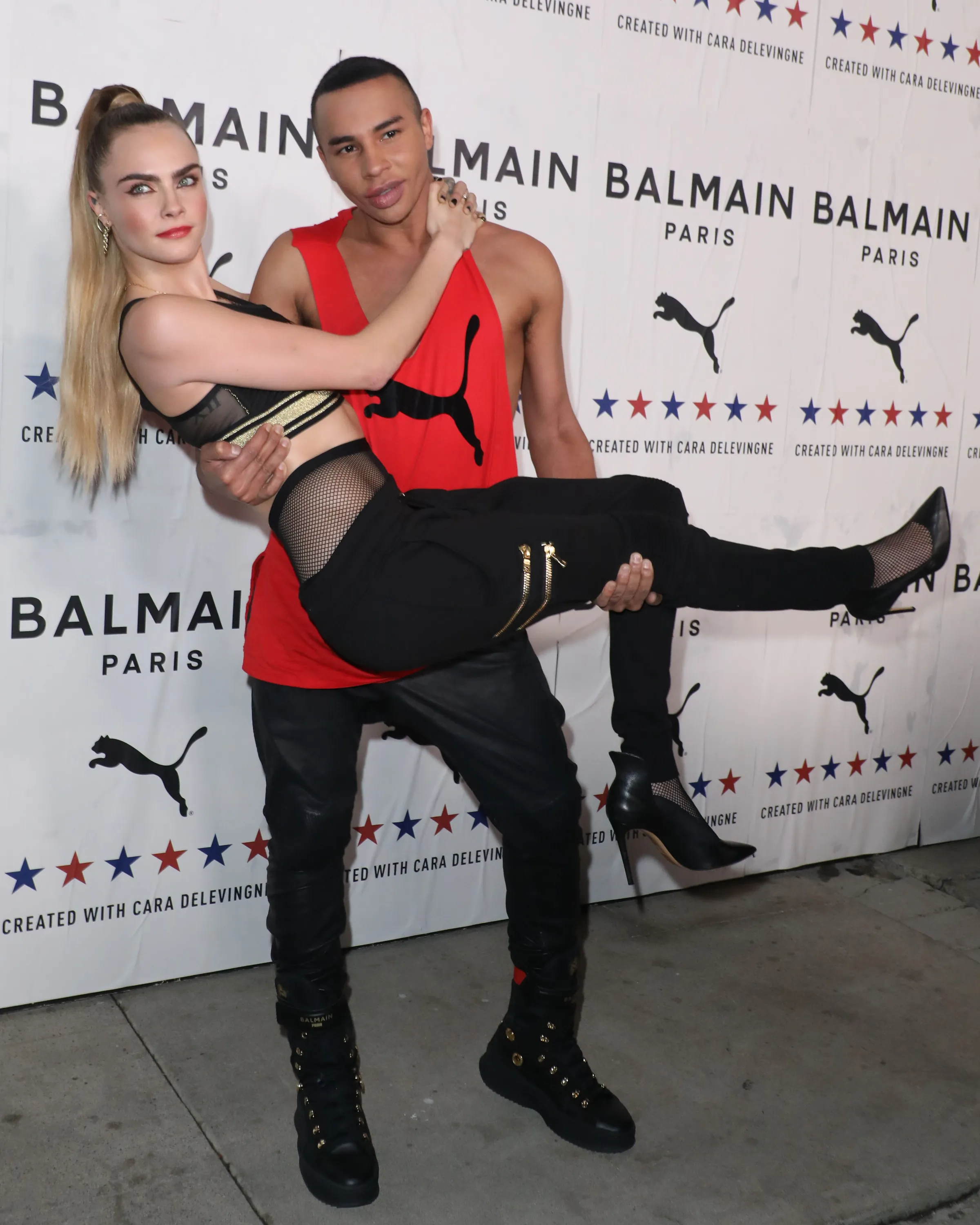 Cara Delevingne and Balmain Creative Director Olivier Rousteing attend PUMA x Balmain created with Cara Delevingne LA Launch Event at Milk Studios on November 21, 2019 in Los Angeles, California. (Photo by Image Press Agency/The Mega Agency)