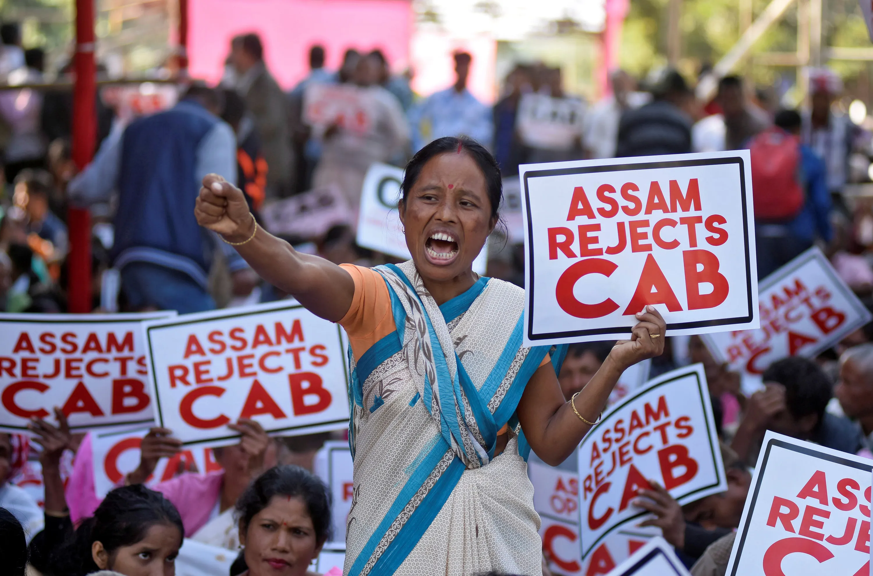 A woman shouts slogans during a protest against the Citizenship Amendment Bill, a bill approved by India's cabinet to give citizenship to religious minorities persecuted in neighboring Muslim countries, in Guwahati, India, December 5, 2019. (Photo by Anuwar Hazarika/Reuters)