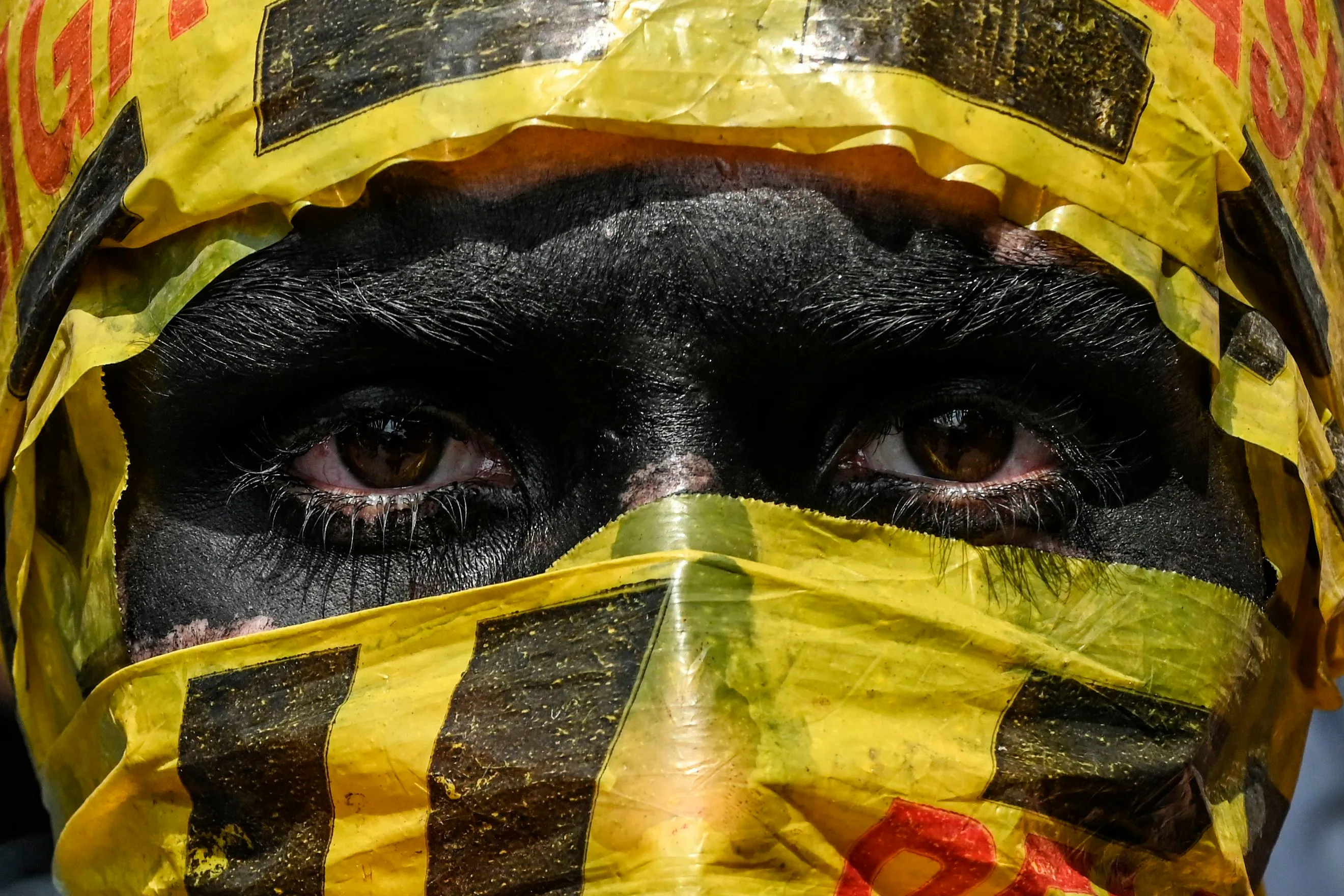 An anti-government protester takes part in a march in Medellin, Colombia, on December 4, 2019. Protests in Colombia, which are entering the 14th consecutive day, have drawn anywhere from hundreds to several thousand people who often bang pots and pans as they demand right-wing president Ivan Duque change his policies. (Photo by Joaquin Sarmiento/AFP Photo)