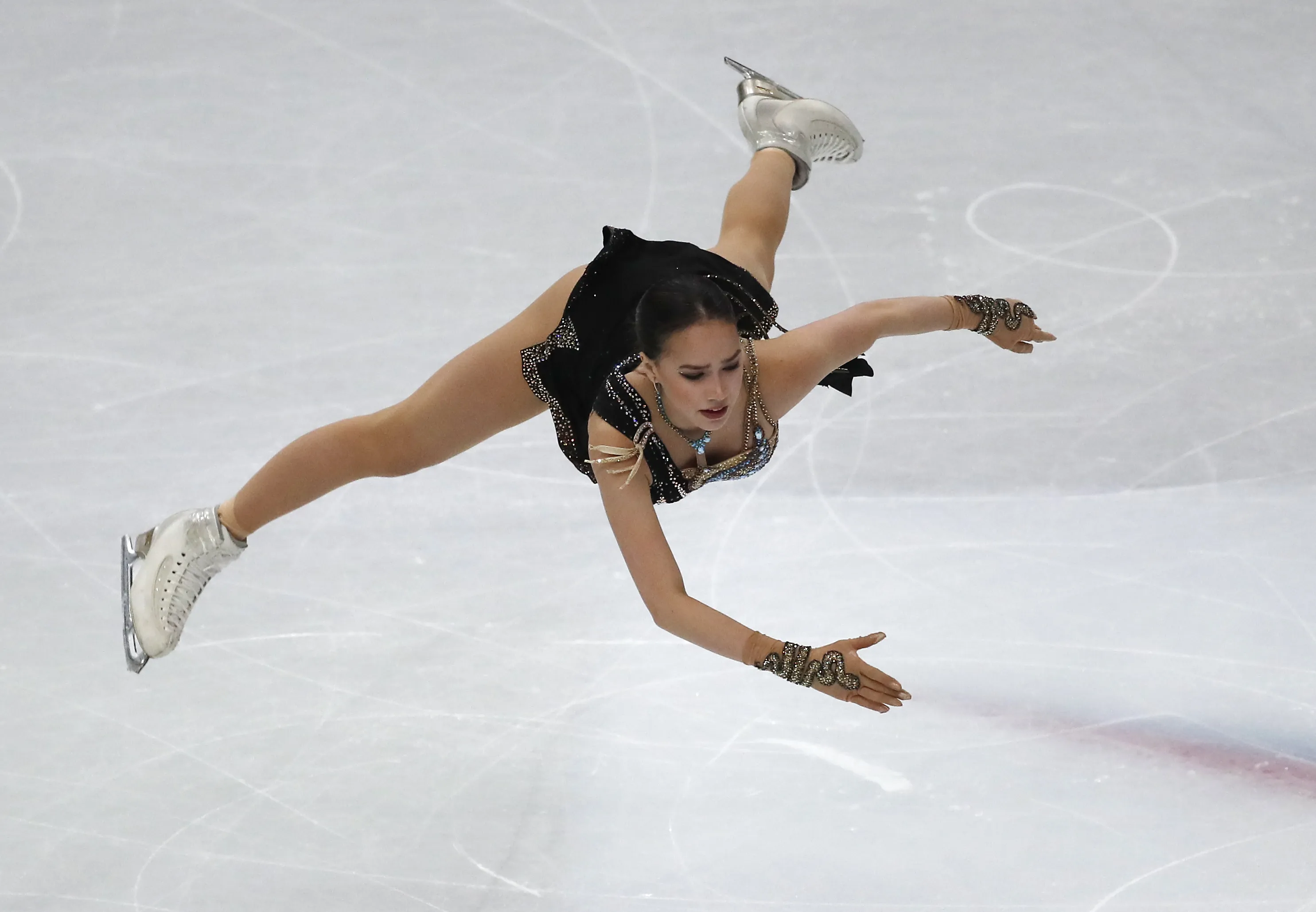 Russia's Alina Zagitova competes in the women's free skating program during the figure skating Grand Prix finals at the Palavela ice arena, in Turin, Italy, Saturday, December 7, 2019. (Photo by Antonio Calanni/AP Photo)