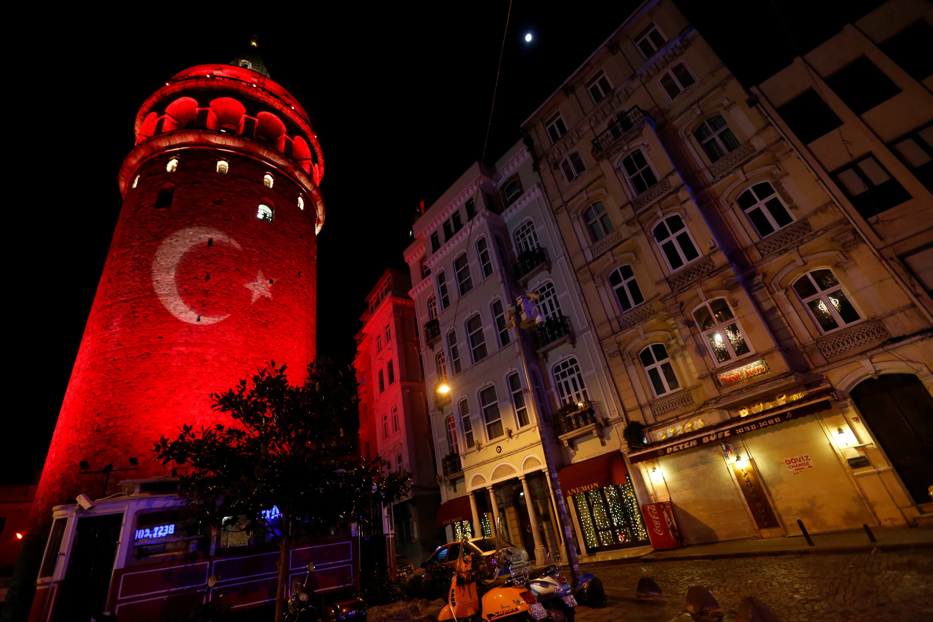 A Turkish flag is projected on the historical Galata Tower in tribute to the victims of Saturday's blasts, in Istanbul, Turkey, early December 12, 2016. (Photo by Murad Sezer/Reuters)