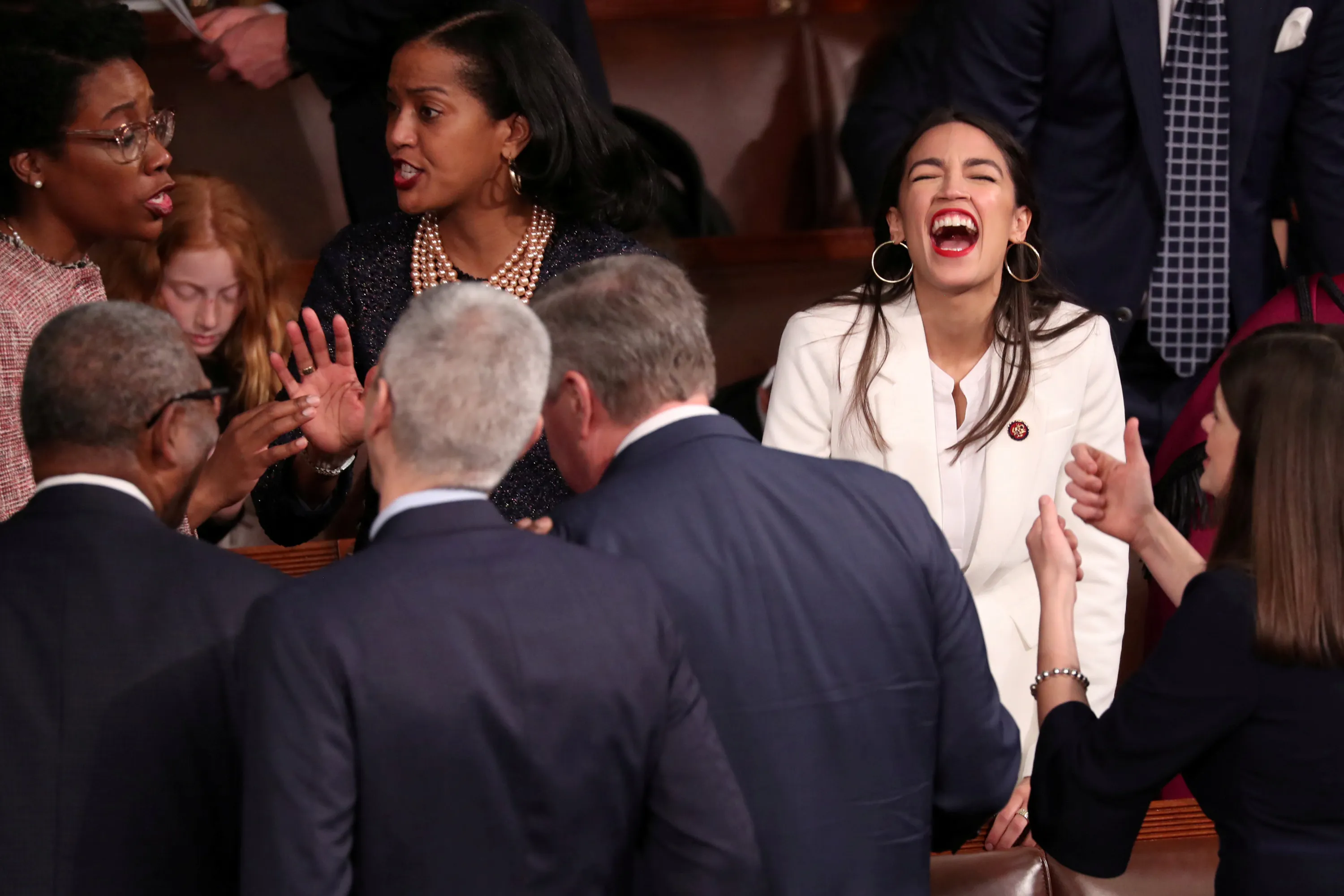 U.S. Representative-elect Alexandria Ocasio-Cortez (D-NY) reacts inside the House Chamber as the U.S. House of Representatives meets for the start of the 116th Congress on Capitol Hill in Washington, U.S., January 3, 2019. (Photo by Jonathan Ernst/Reuters)