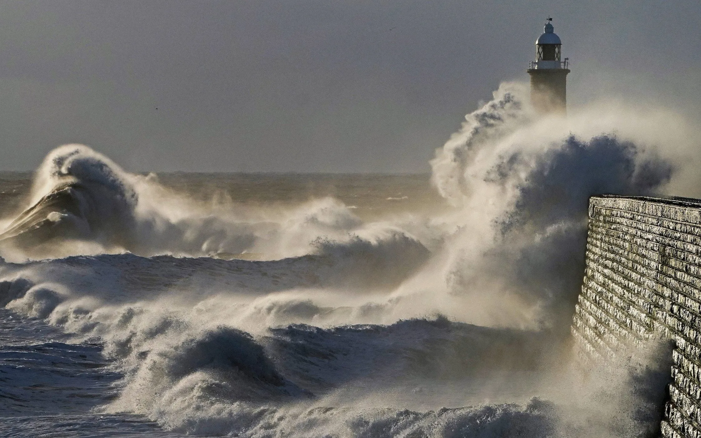 Waves crash over the sea wall at Tynemouth in the north east of England on May 4, 2019. The UK is expected to be hit with cold showers, frost and strong winds across the bank holiday weekend just weeks after record-high temperatures at Easter. (Photo by Owen Humphreys/PA Wire Press Association)