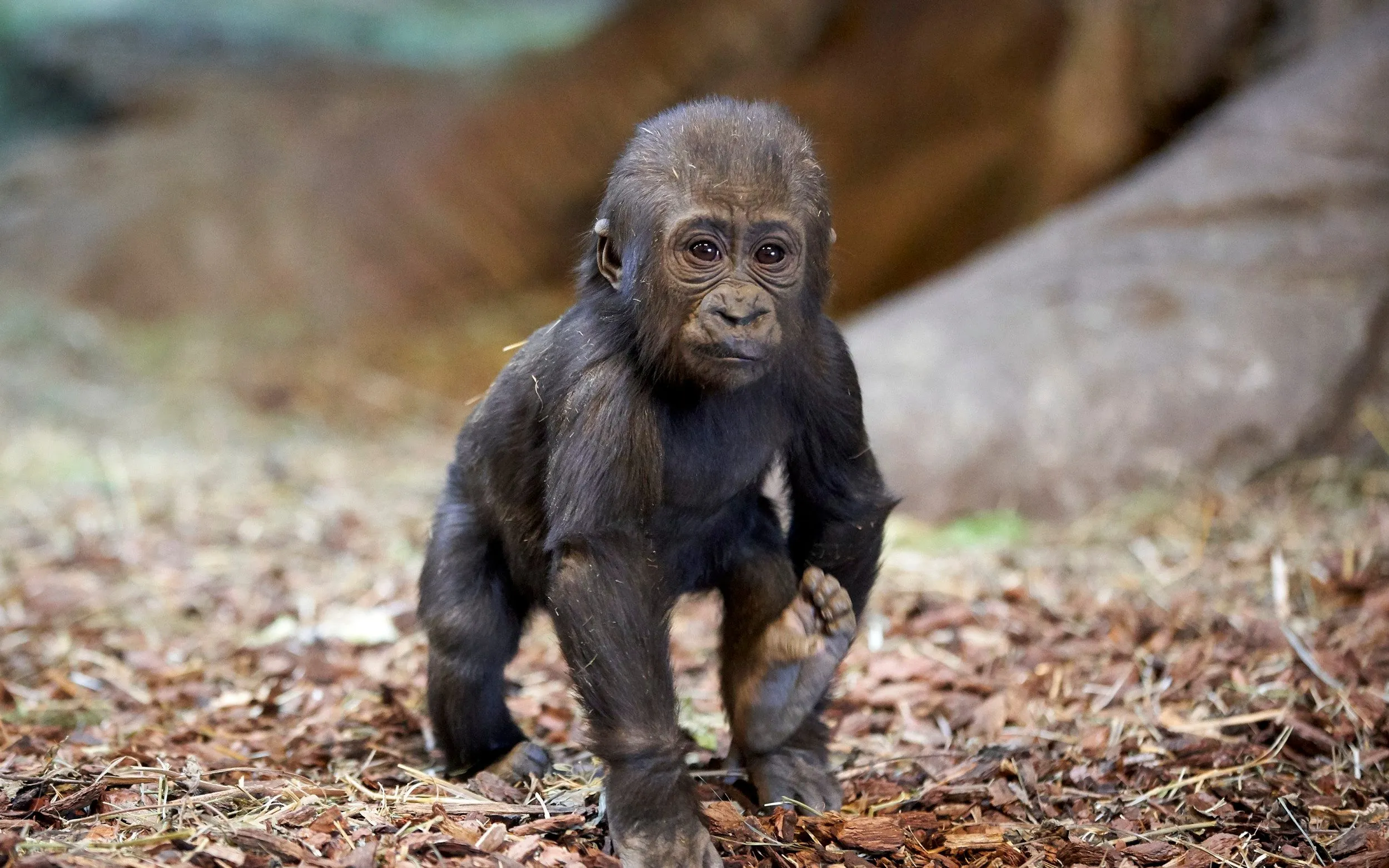 Zuri, a female Western Lowland Gorilla born on May 5, 2019, explores her enclosure at the Henry Doorly Zoo in Omaha, Neb., Friday, December 20, 2019. Zuri was hand-raised by zookeepers because of breastfeeding problems with the mother, 15-year-old first-time parent Bambio. (Photo by Nati Harnik/AP Photo)