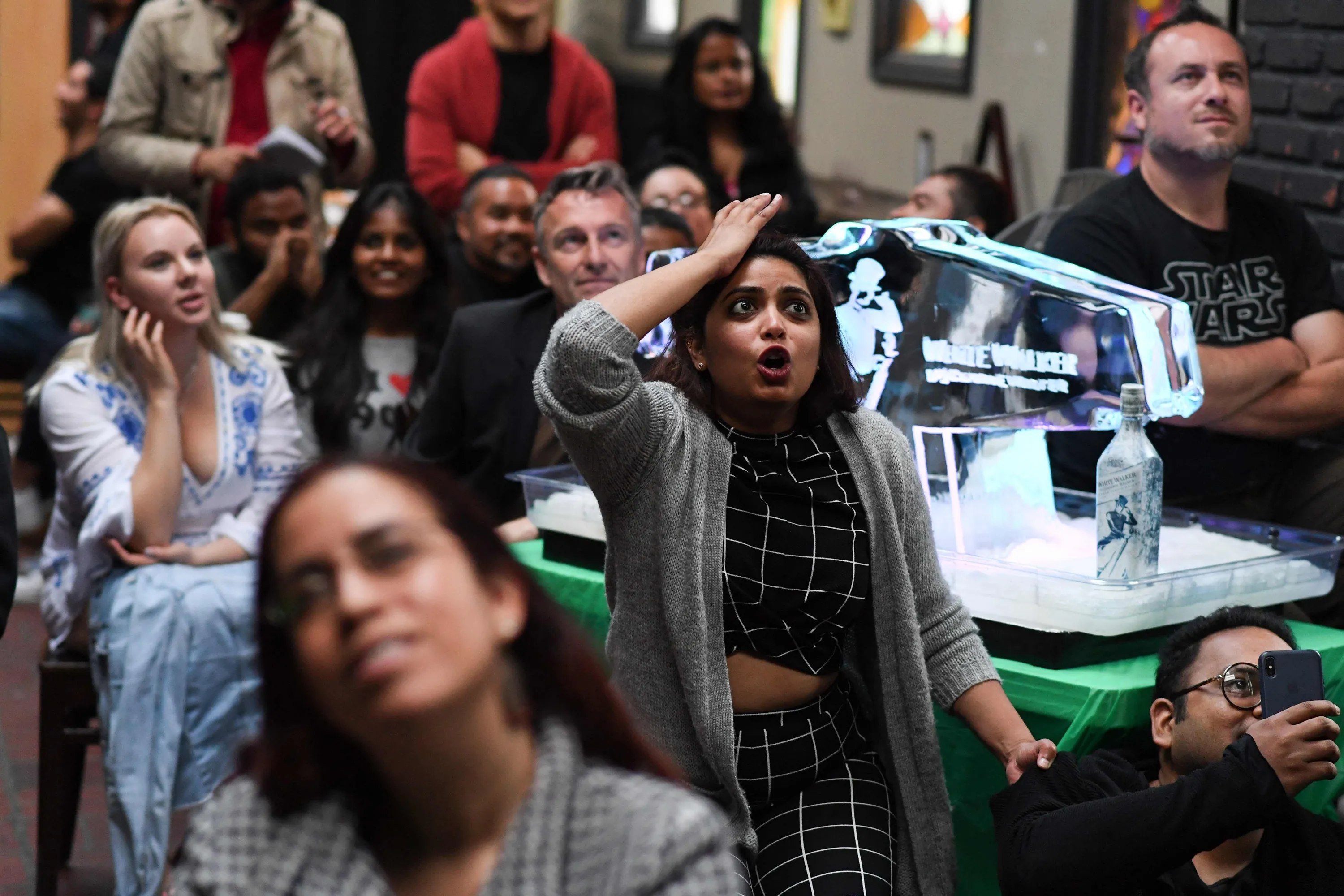 Fans react as they watch HBO's “Game of Thrones” series finale at a viewing party at Brennan's bar in Marina del Rey, California, May 19, 2019. (Photo by Robyn Beck/AFP Photo)