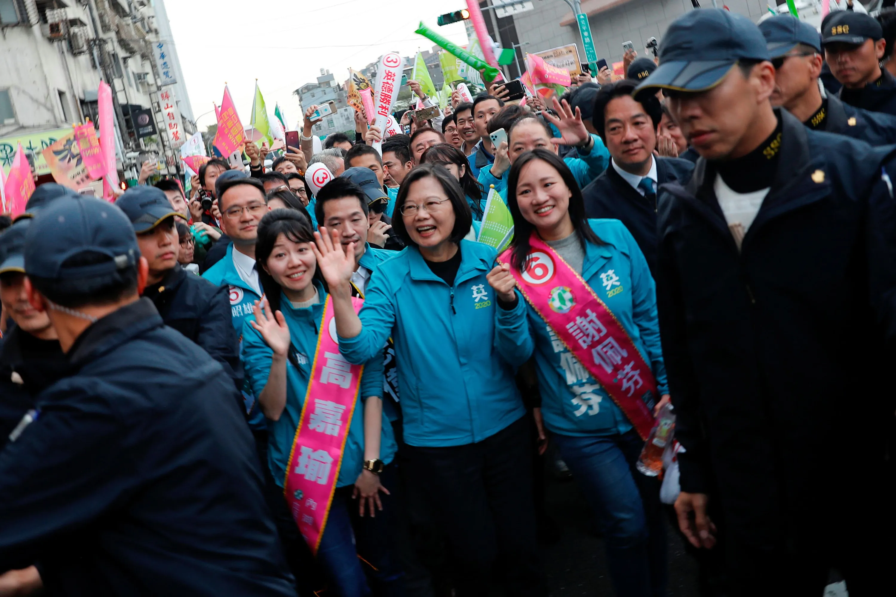 Taiwan President Tsai Ing-wen and the Democratic Progressive Party's (DPP) vice presidential candidate William Lai attend a campaign event in Taipei, Taiwan on January 10, 2020. (Photo by Tyrone Siu/Reuters)
