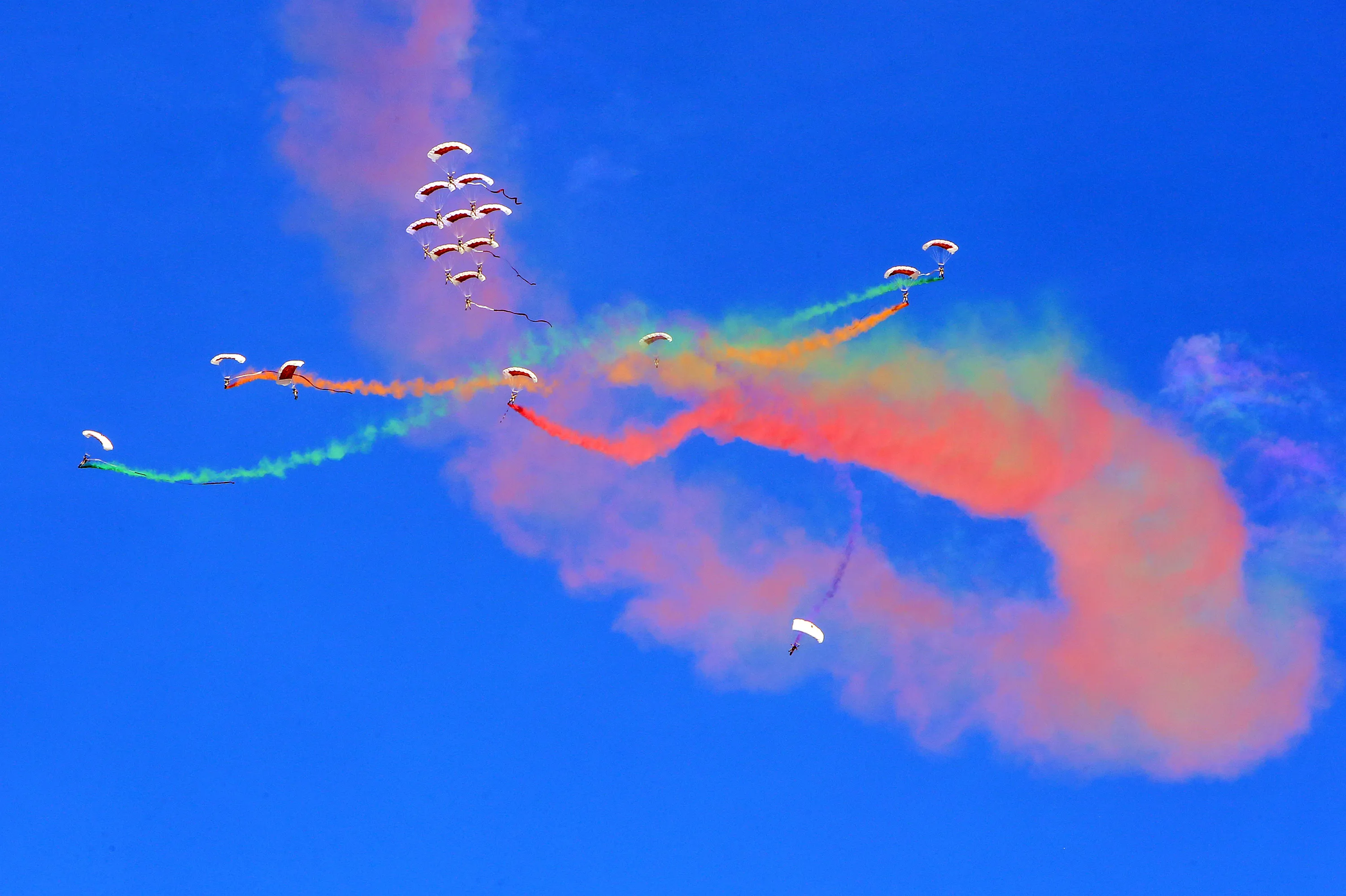 Member of Qatar's air sport committee perform during the Kuwait aviation show in Kuwait City on January 15, 2020. (Photo by Yasser Al-Zayyat/AFP Photo)