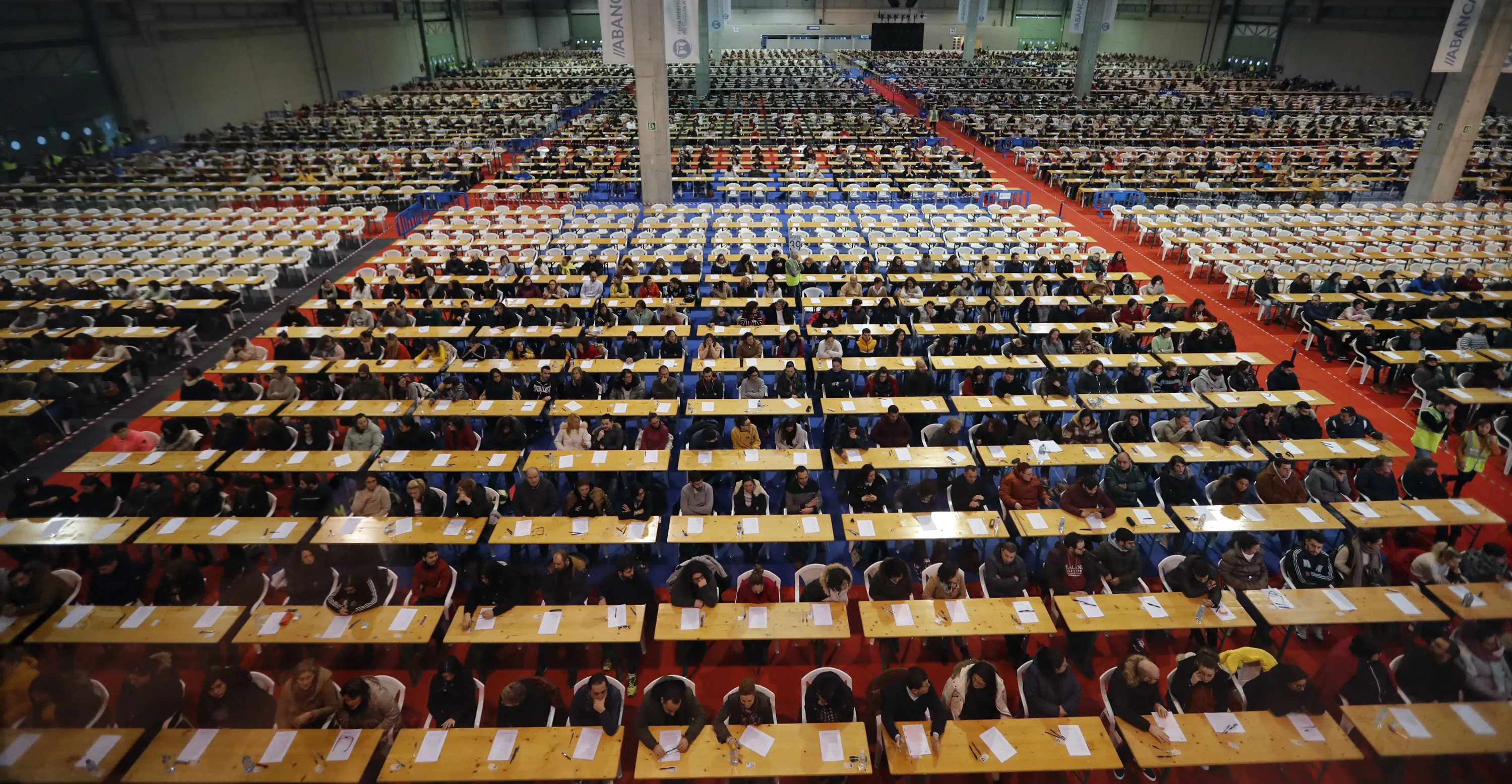 More than 9,700 Candidates take part in an examination to try to get one of the public sector jobs offered by state-run Correos postal service in the town of Sailleda, Galicia, northwestern Spain, 19 January 2020. More than 166,000 people attended the entrance exams held in several Spanish cities to get one of the 4,500 public jobs tendered by Correos, the biggest selection for Correos service held in Spain over the last decade. (Photo by Lavandeira Jr./EPA/EFE)
