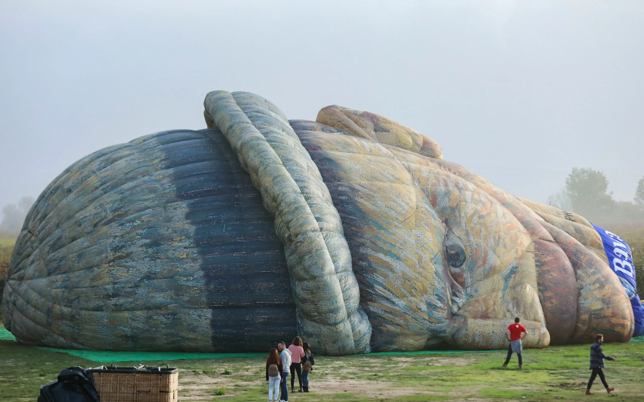 Participants prepare their hot air balloons at the Flutuar – III Coruche Ballooning Festival, in Coruche, Portugal, 29 October 2019. Today the balloons were not able to take off due to weather conditions. More than 20 ballooning teams from various countries with conventional and special shape balloons are taking part in the festival that runs from 29 October to 03 November. (Photo by Miguel A. Lopes/EPA/EFE/Rex Features/Shutterstock)