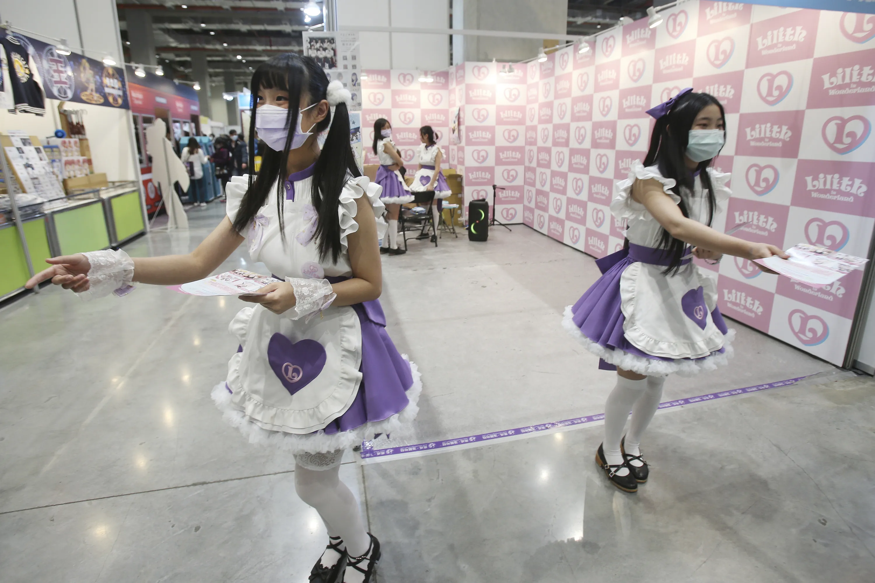 Showgirls wear face masks at the Comic Exhibition in Taipei, Taiwan, Sunday, February 2, 2020. A viral outbreak that began in China has infected more than 11,900 people globally. (Photo by Chiang Ying-ying/AP Photo)