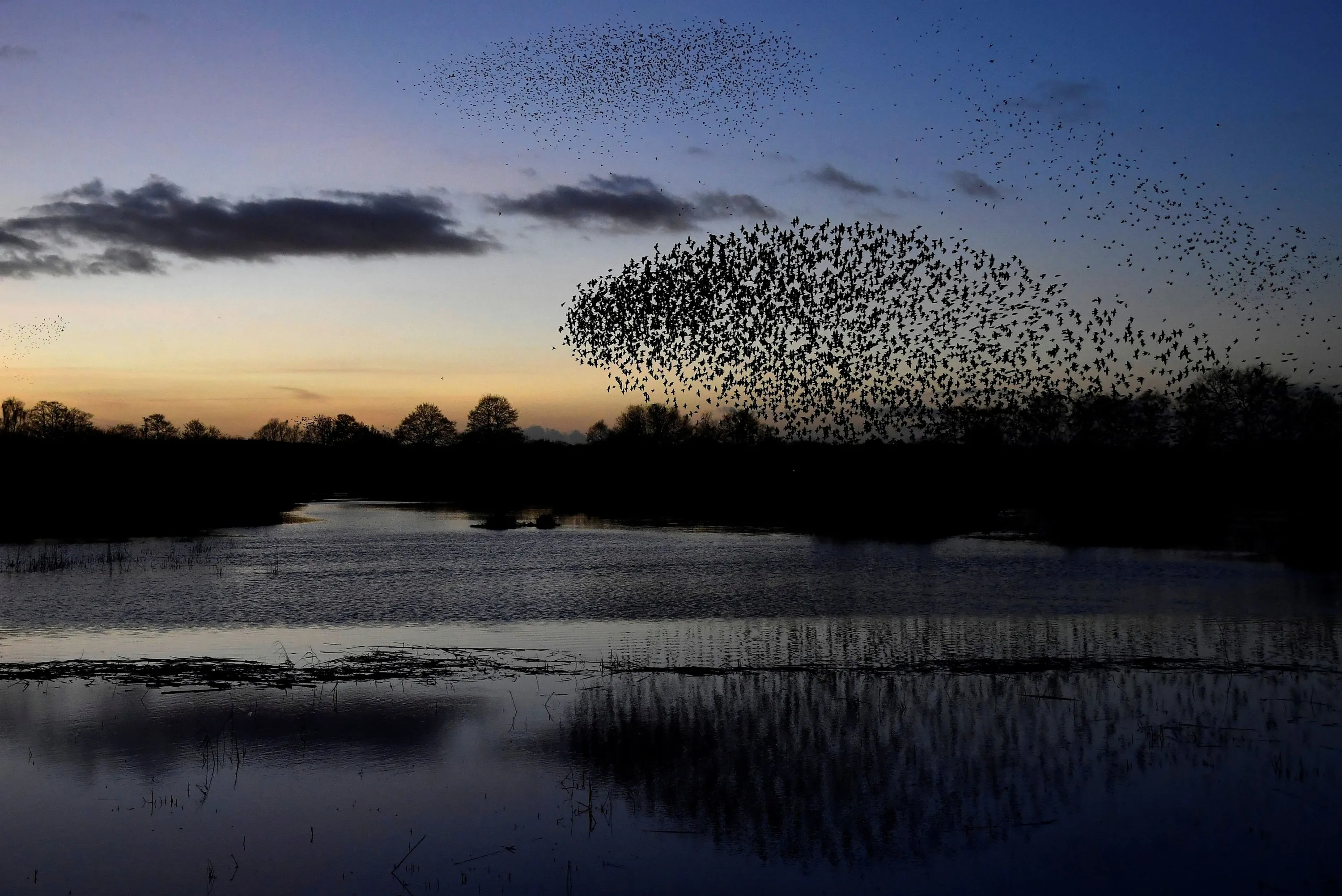 Murmurations are seen at dusk as thousands of starlings return to roost on the Somerset Levels, near Glastonbury, Britain, January 3, 2020. (Photo by Toby Melville/Reuters)