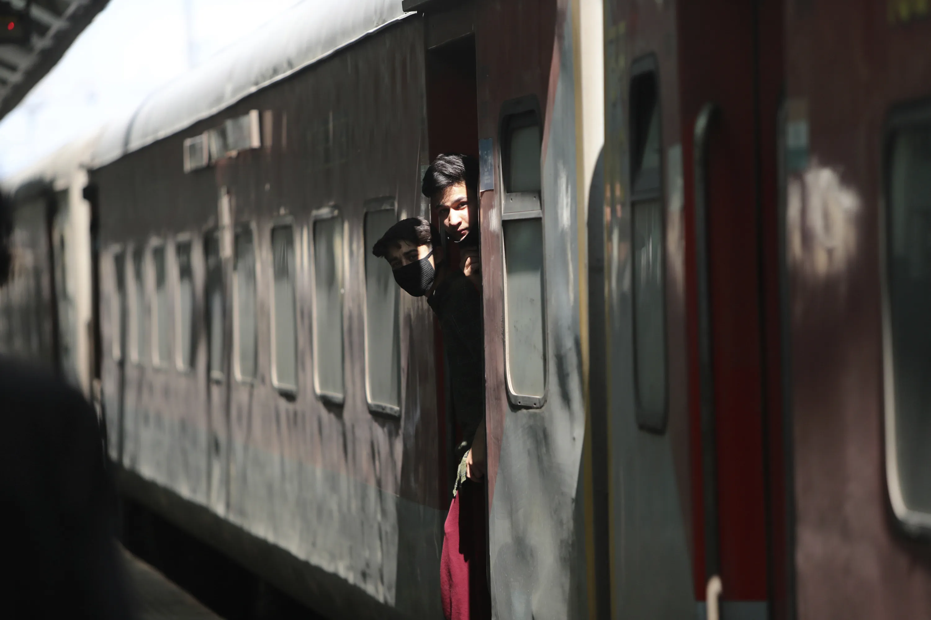 Indian students returning from Uttar Pradesh amid Coronavirus concerns arrive at a railway station in Jammu, India, Sunday, March 22, 2020. India is observing a 14-hour “people's curfew” called by Prime Minister Narendra Modi in order to stem the rising coronavirus caseload in the country of 1.3 billion. (Photo by Channi Anand/AP Photo)