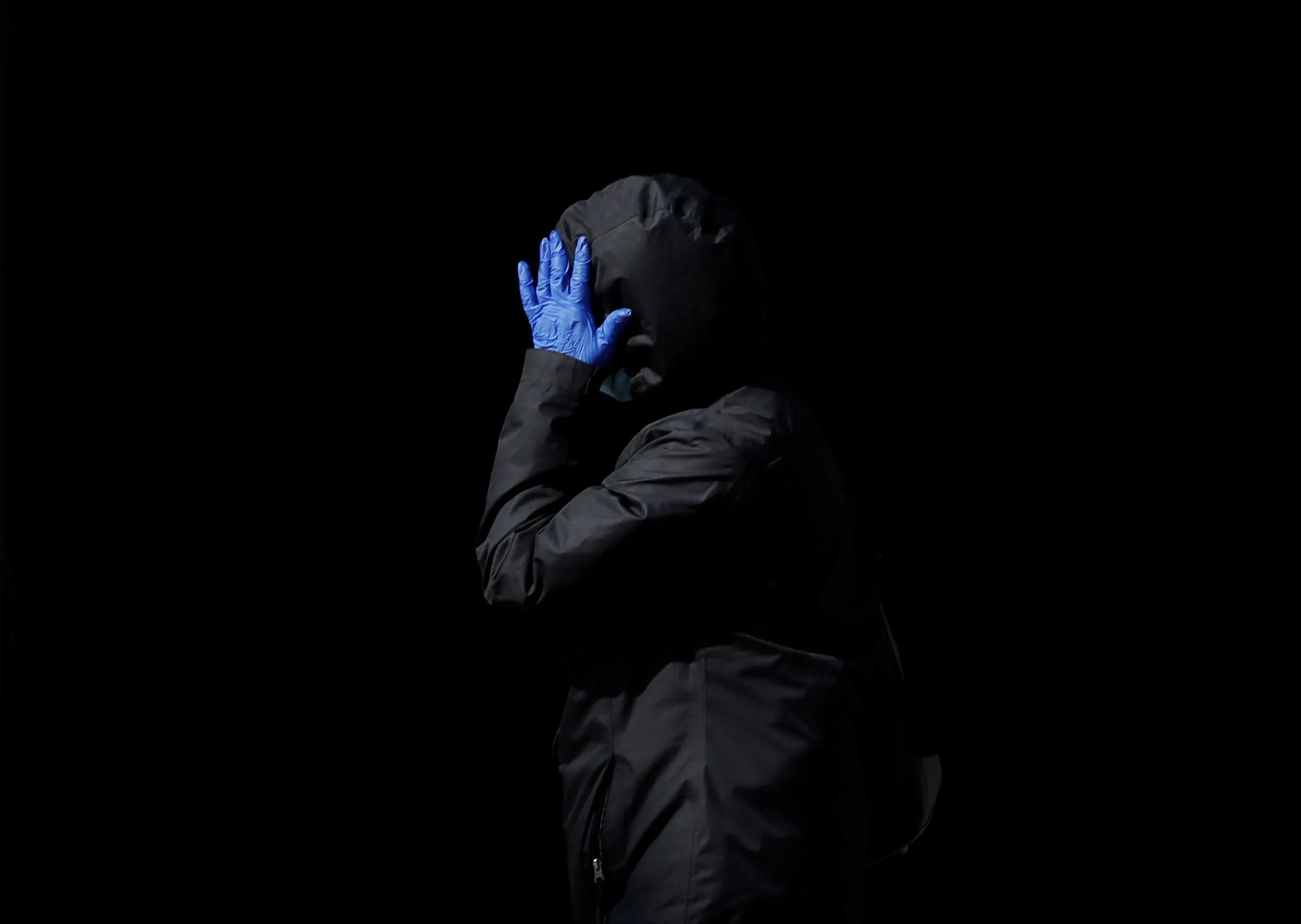 A woman wearing a protective mask and gloves as a preventive measure against coronavirus disease (COVID-19), covers her face with the hand from the oncoming pedestrian as she walks along the empty main street Khreshchatyk in central Kiev, Ukraine on April 2, 2020. (Photo by Gleb Garanich/Reuters)