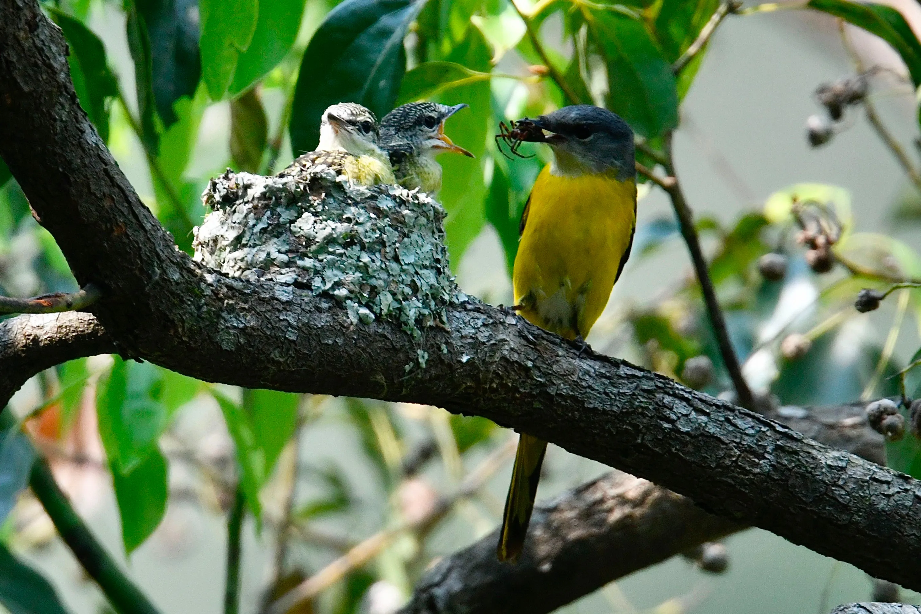 A female grey-chinned minivet feeds her chicks in a nest in Wulai District, New Taipei City on April 19, 2020. (Photo by Sam Yeh/AFP Photo)