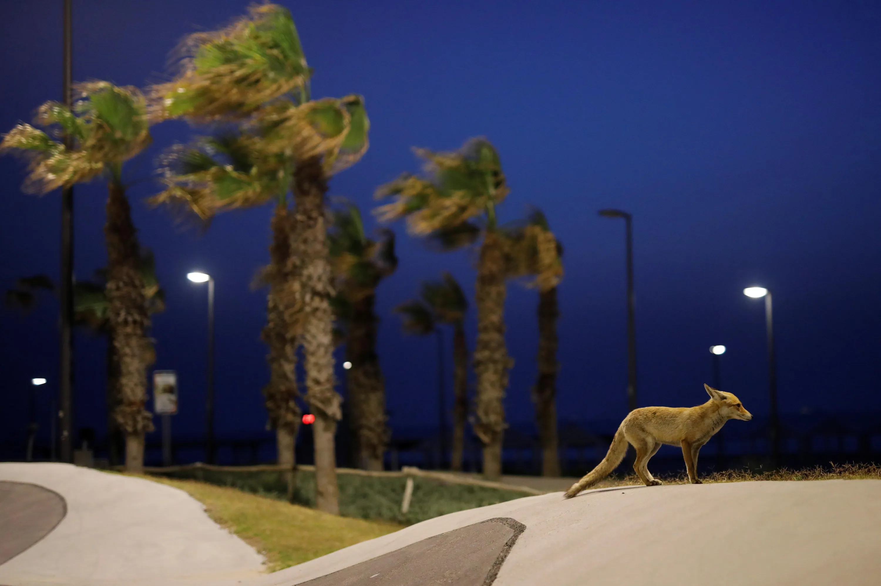 A red fox stands in an empty park in the southern Israeli city of Ashkelon, where predatory animals now roam amid the coronavirus disease (COVID-19) restrictions that have closed beaches and emptied sidewalks April 19, 2020. (Photo by Amir Cohen/Reuters)