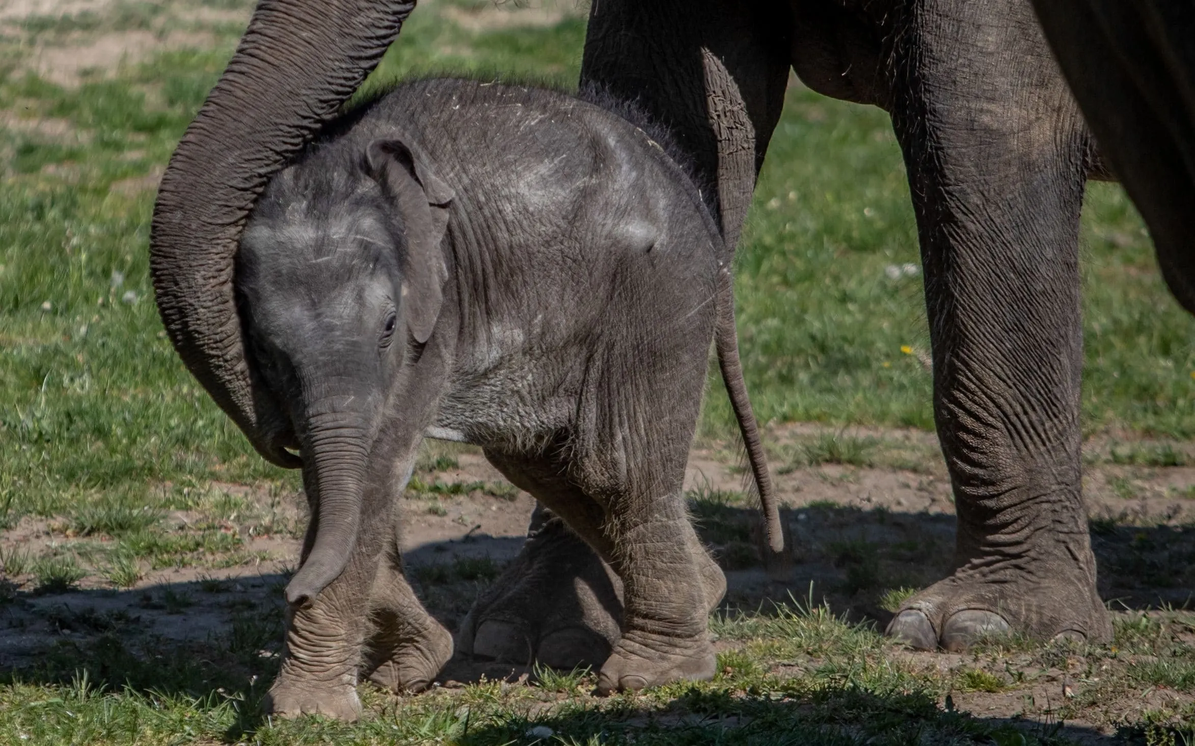A baby elephant stands close to its mum at the zoo in Prague, Czech Republic, 27 April 2020. Zoos in the country are allowed to reopen their outdoor areas under strict safety measures to slow down the ongoing pandemic of the COVID-19 disease caused by the SARS-CoV-2 coronavirus. Prague Zoo was closed to visitors since 13 March 2020. (Photo by Martin Divisek/EPA/EFE/Rex Features/Shutterstock)