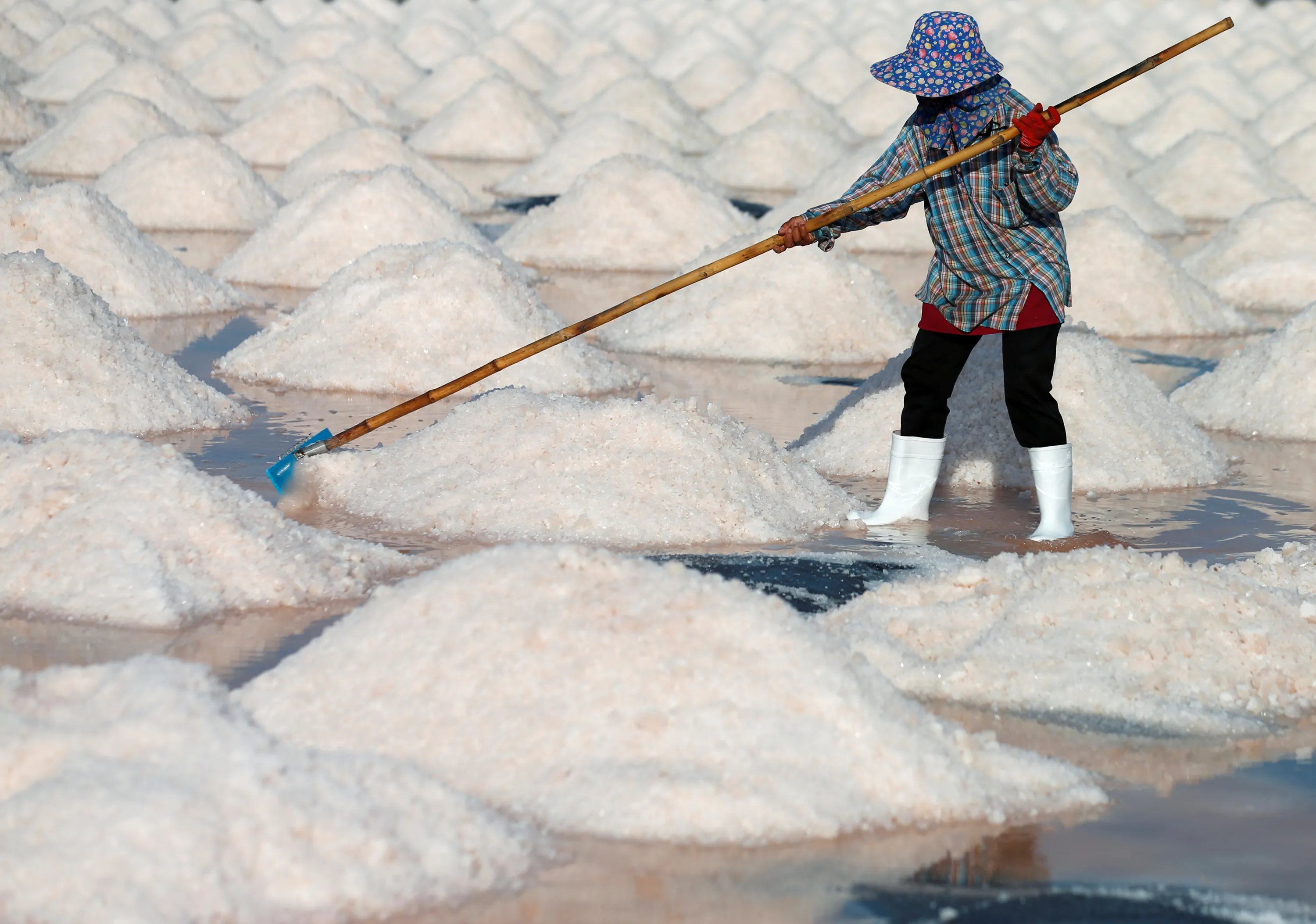 A woman works on a salt farm during the coronavirus disease (COVID-19) outbreak at Phetchaburi, Thailand on May 9, 2020. (Photo by Soe Zeya Tun/Reuters)