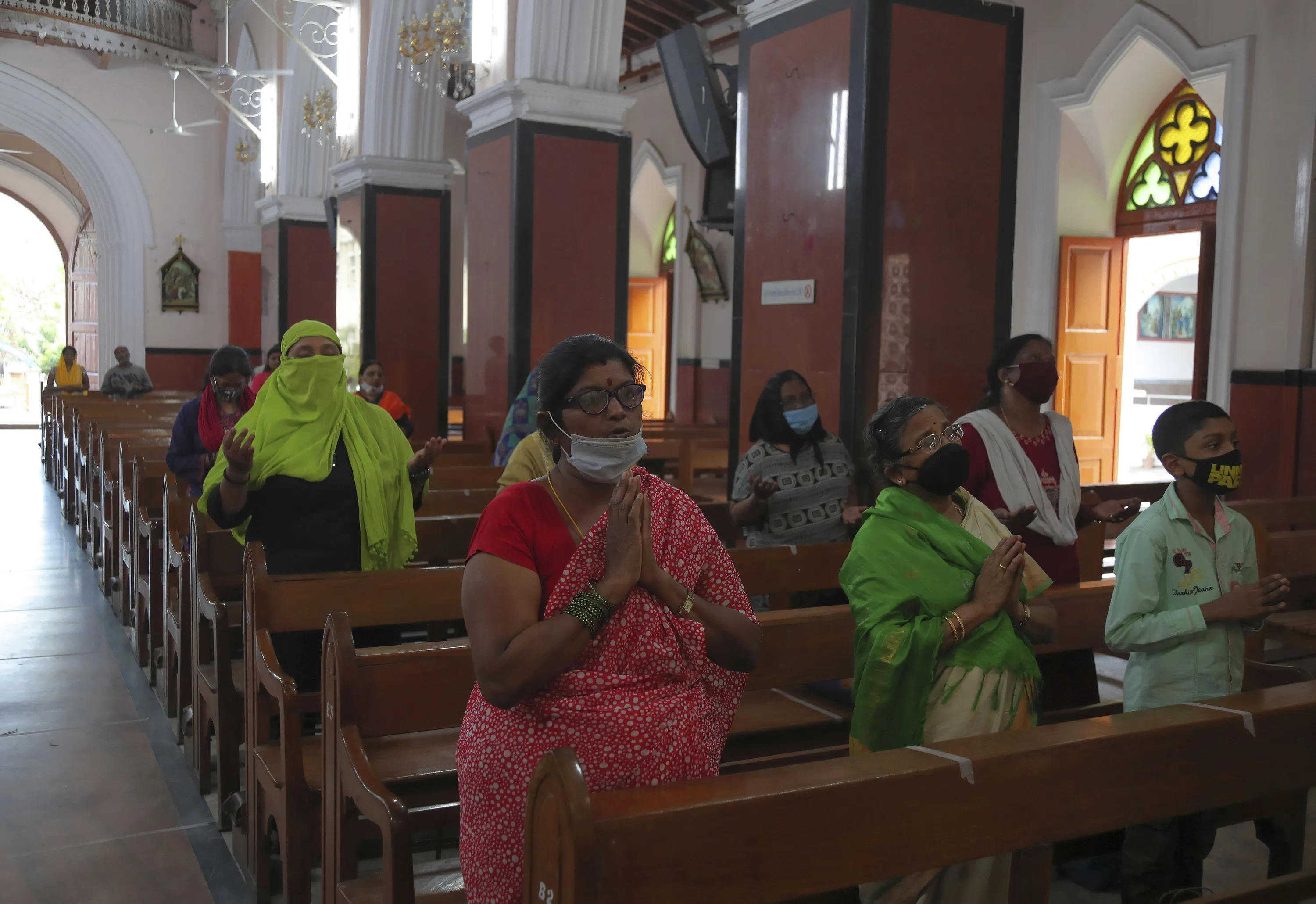 Christian devotees offer prayers at Saint Mary's Basilica opened after lockdown in Hyderabad, India, Tuesday, June 9, 2020. (Photo by Mahesh Kumar A./AP Photo)