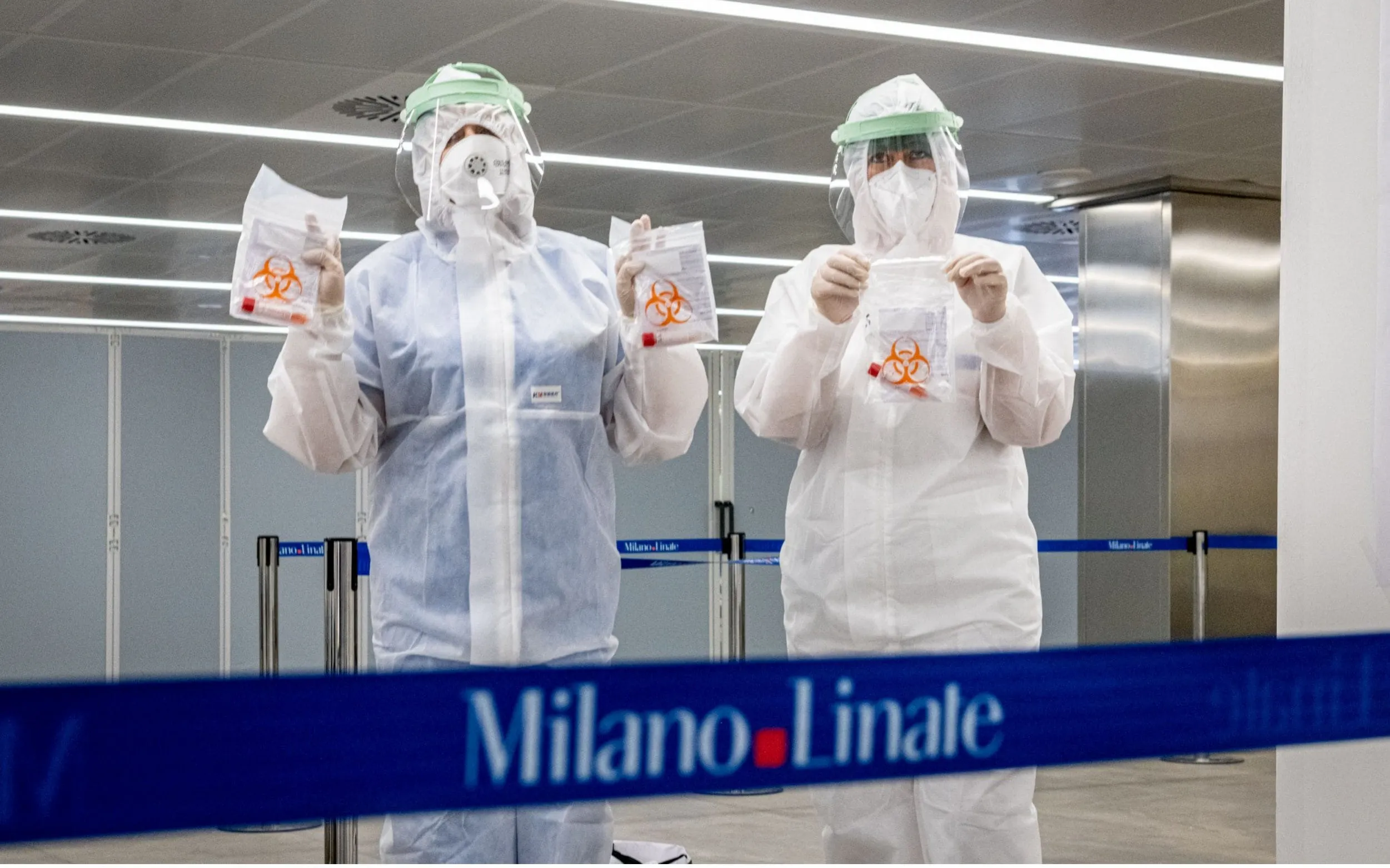 The first day of swabbing for coronavirus (COVID-19) at Linate Airport in Milan, Italy on August 21, 2020 for flights arriving from Croatia, Greece, Malta and Spain. (Photo by Marco Passaro/Rex Features/Shutterstock)